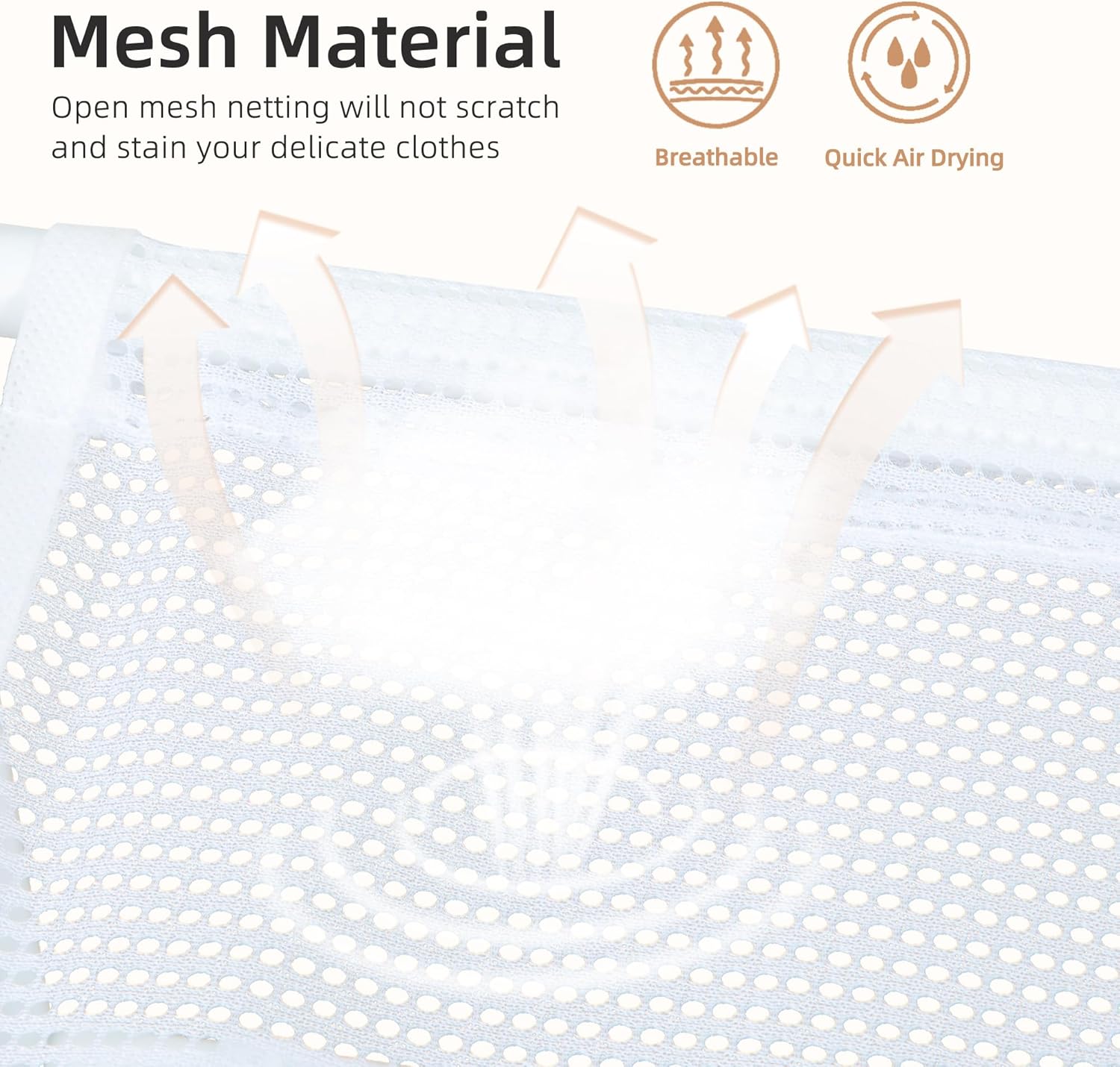 - ăHigh-Density Mesh DesignăThe open mesh netting prevents scratching and staining of delicate clothes. This mesh drying rack ensures airflow for quick drying and allows sweaters, delicate garments, pillows, and toys to lay flat while drying.