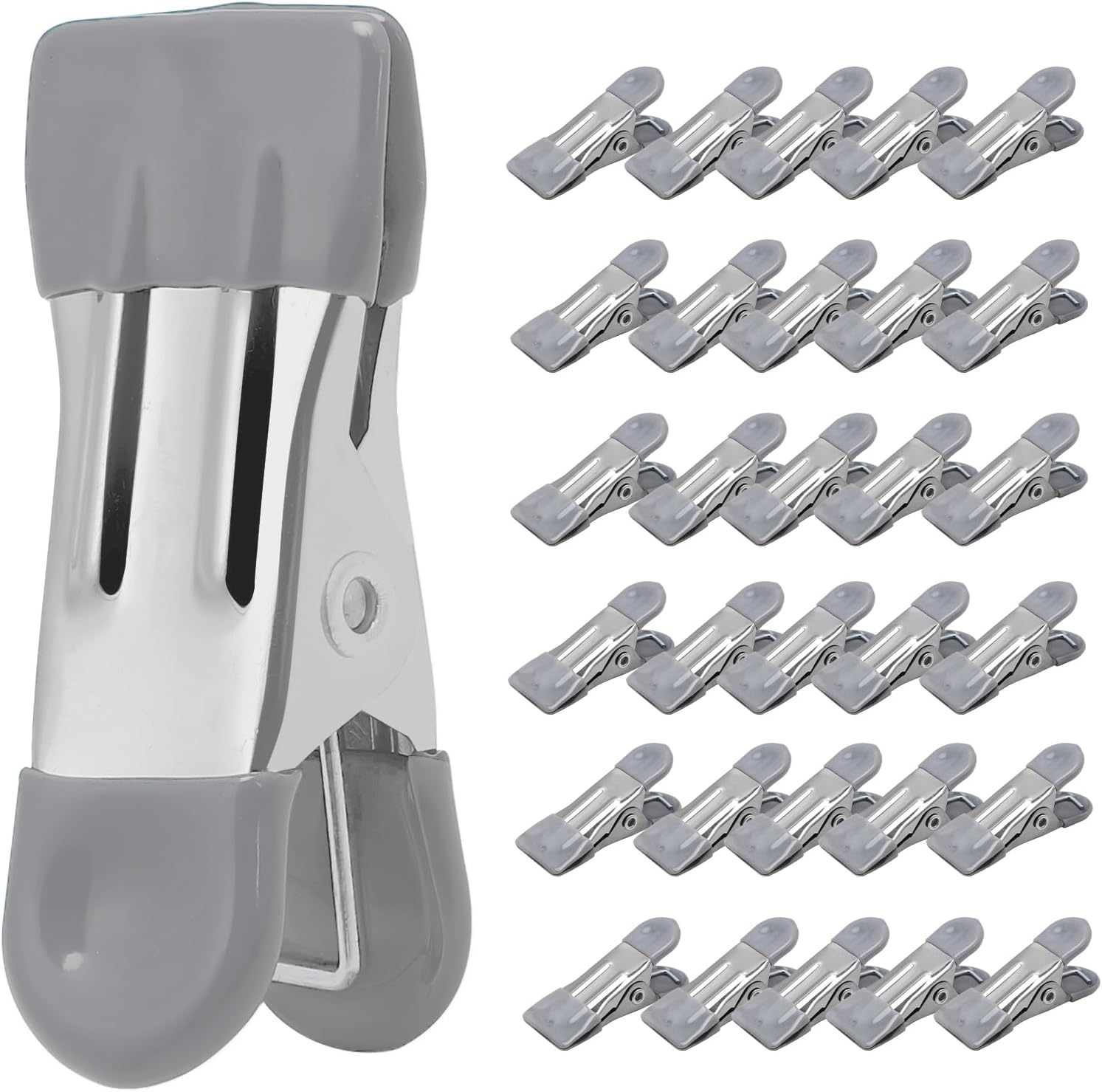 Clothes Pins Heavy Duty 30 Pack - 2.17 Inch Metal Chip Clips, Clothespins for Photo Drying Clothesline Laundry Sock, Bag Clips for Food Kitchen Stainless Steel with Rubber, Gray