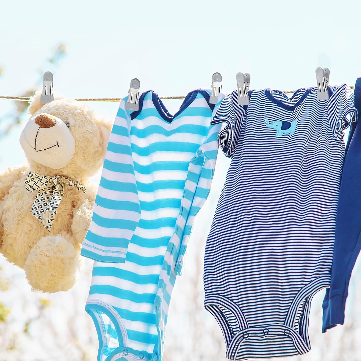 - Quality Material: The metal clothespin is made of quality stainless steel, offering excellent durability and waterproof performance. It is resistant to breakage, deformation, and rust even when exposed to outdoor wind and sun, making it the perfect choice for outdoor clothes drying