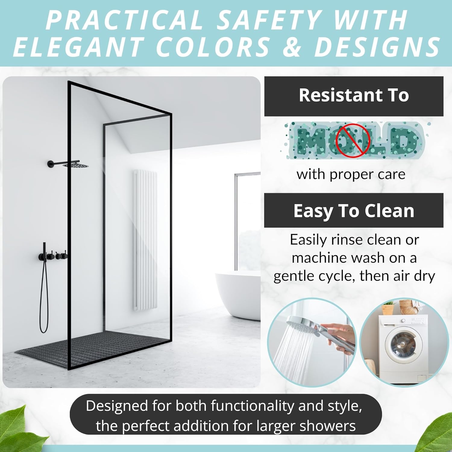 - NON-SLIP MAT enjoy 360-degree protection in your shower; prevent falls with an extra large rectangle bathroom shower bath mat for larger shower stalls with pliable suction cups for secure sticking capacity to help securely hold the shower mat to shower stall floors for safe anti-slip protection