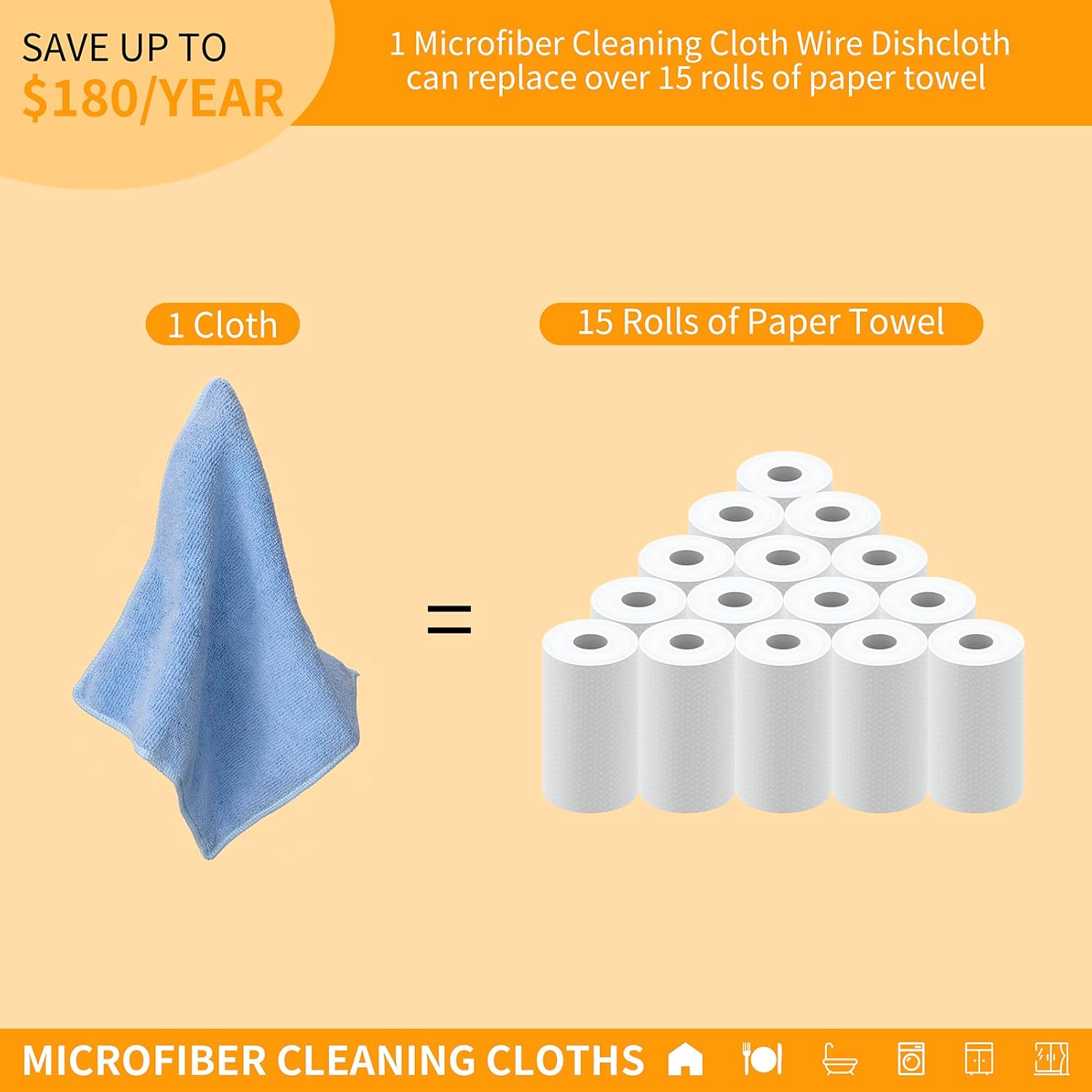 2 in 1 Microfiber Cleaning Cloth Kitchen Towels, Non Scratch Wire Dishcloth Cleaning Rags for Washing Dishes, Multipurpose Microfiber Towels for Cars, Kitchen, Wall and Window Cleaner