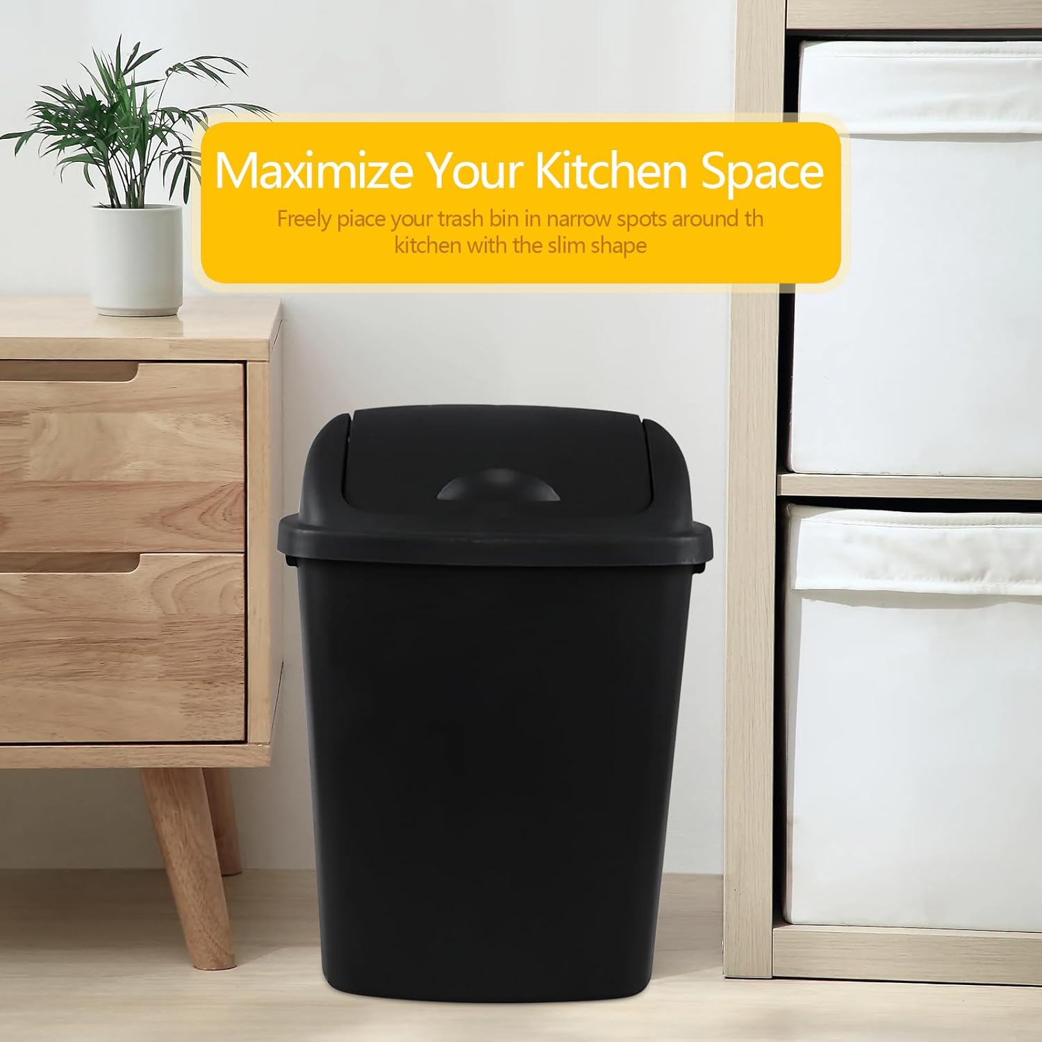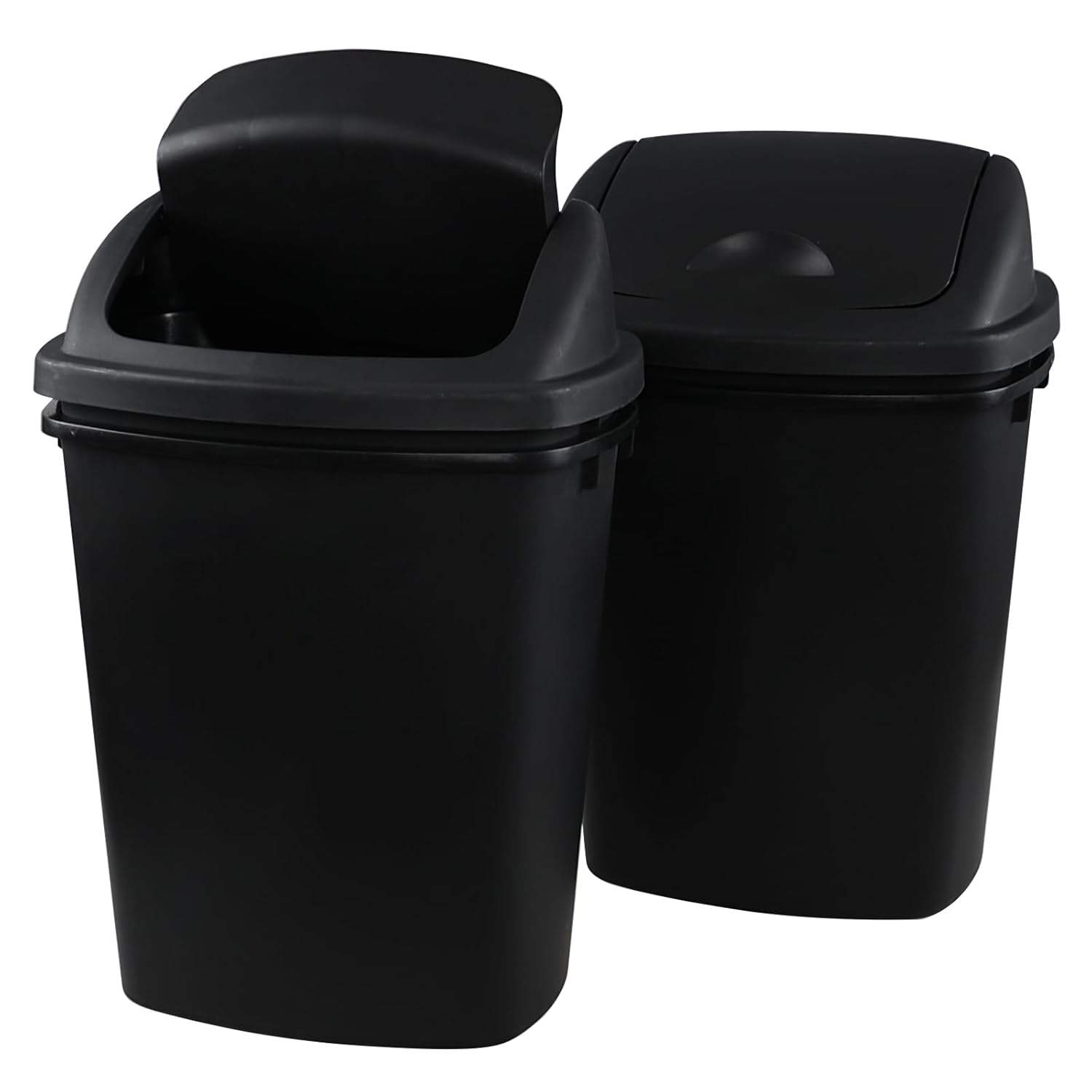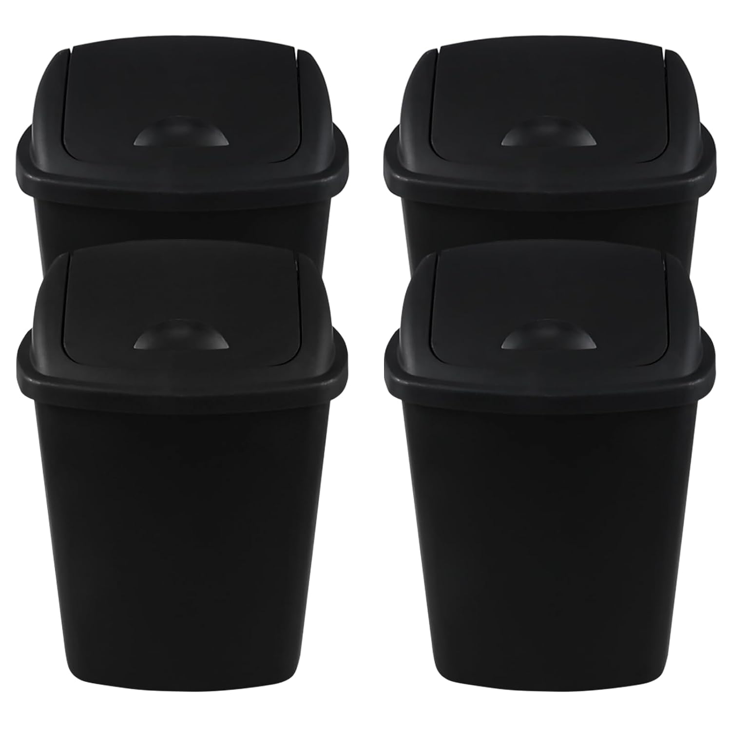 Zopnny 8 Gallon Plastic Swing Top Garag Bin, Lidded Wastebasket Trash Can for Kitchen or Workspace, Set of 4, Black