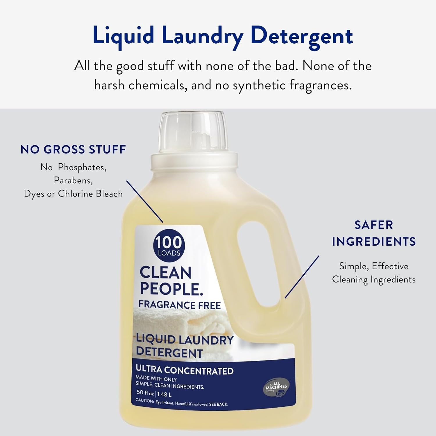 The Clean People Liquid Laundry Detergent - Recyclable Packaging, Stain Fighting - Ultra Concentrated, Laundry Soap - Fragrance Free, 50 fl oz