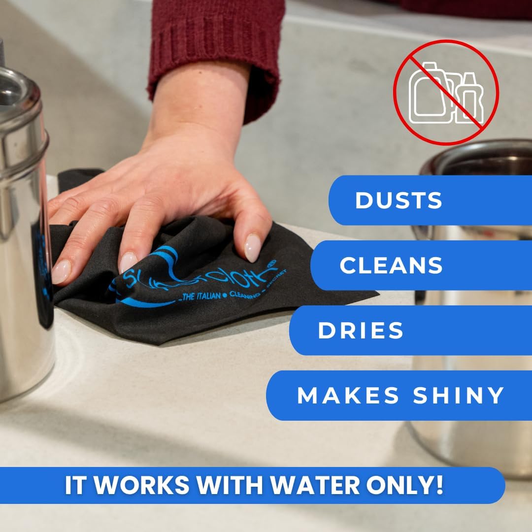Supercloth® Premium Microfiber Cleaning Cloth for All-Purpose, Lasts Over 5 YEARS, Glasses Cleaning Cloth, Microfiber Cleaning Cloth for Cars, Magic Reusable Cloth Streak-Free 100% Made in Italy (2pk)