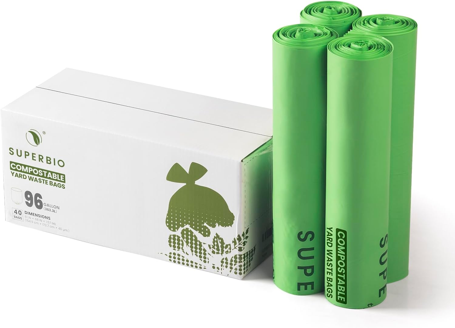 - Product Information: SUPERBIO compostable yard waste bags, 96 gallon bulk package,40 bags. 61 in x 68 in x 1.57 mil