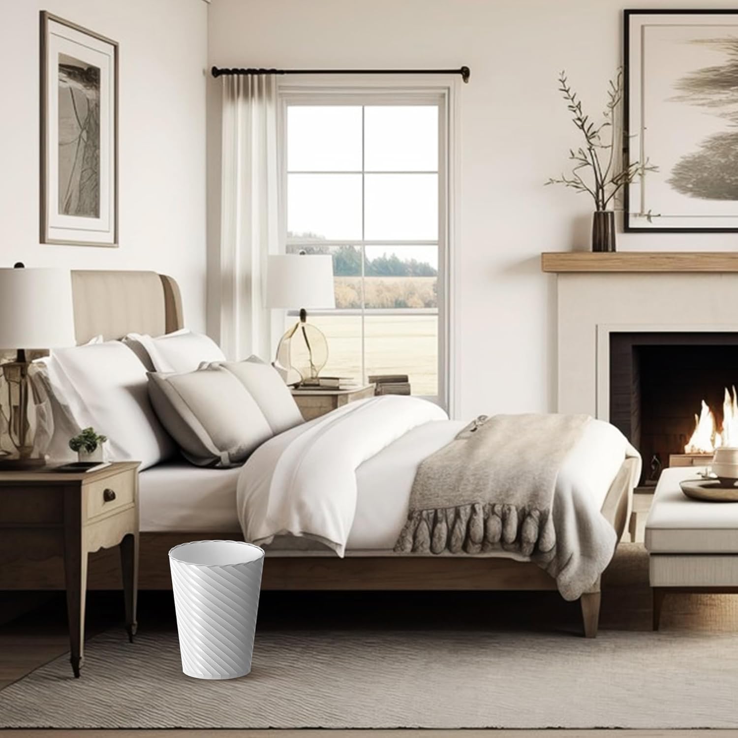 Bathroom Trash Can, 8 Pack 1.8 Gallons Small Trash Can with Trash Bags, Bathroom Garbage Can, Plastic Trash Bin, Round Waste Basket for Bedroom, Office, Kitchen, Room, Compact Space (White)