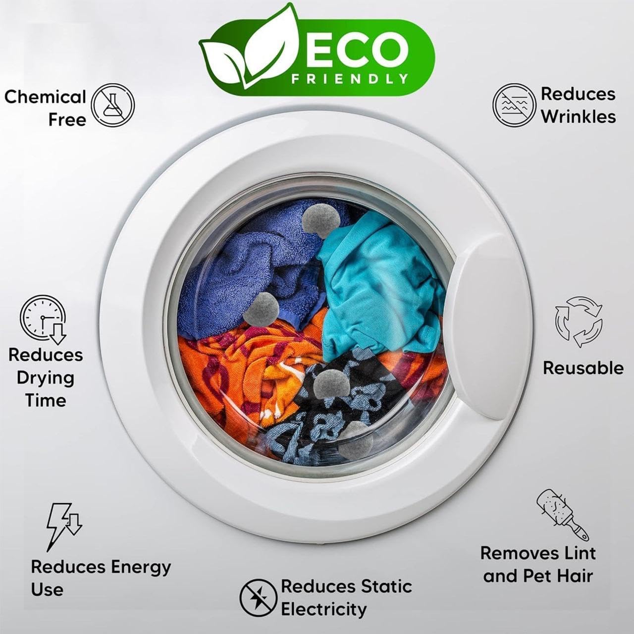 - π Let Your Dryer Balls Flow: Replace the infused fabric dryer sheets and fabric softeners with this natural alternative that will last more than a thousand dryer loads. These help in better hot air circulation as the dryer balls tumble around in the dryer, lifting and separating the laundry. This will also help in reducing appliance usage and electricity by shortening drying time.