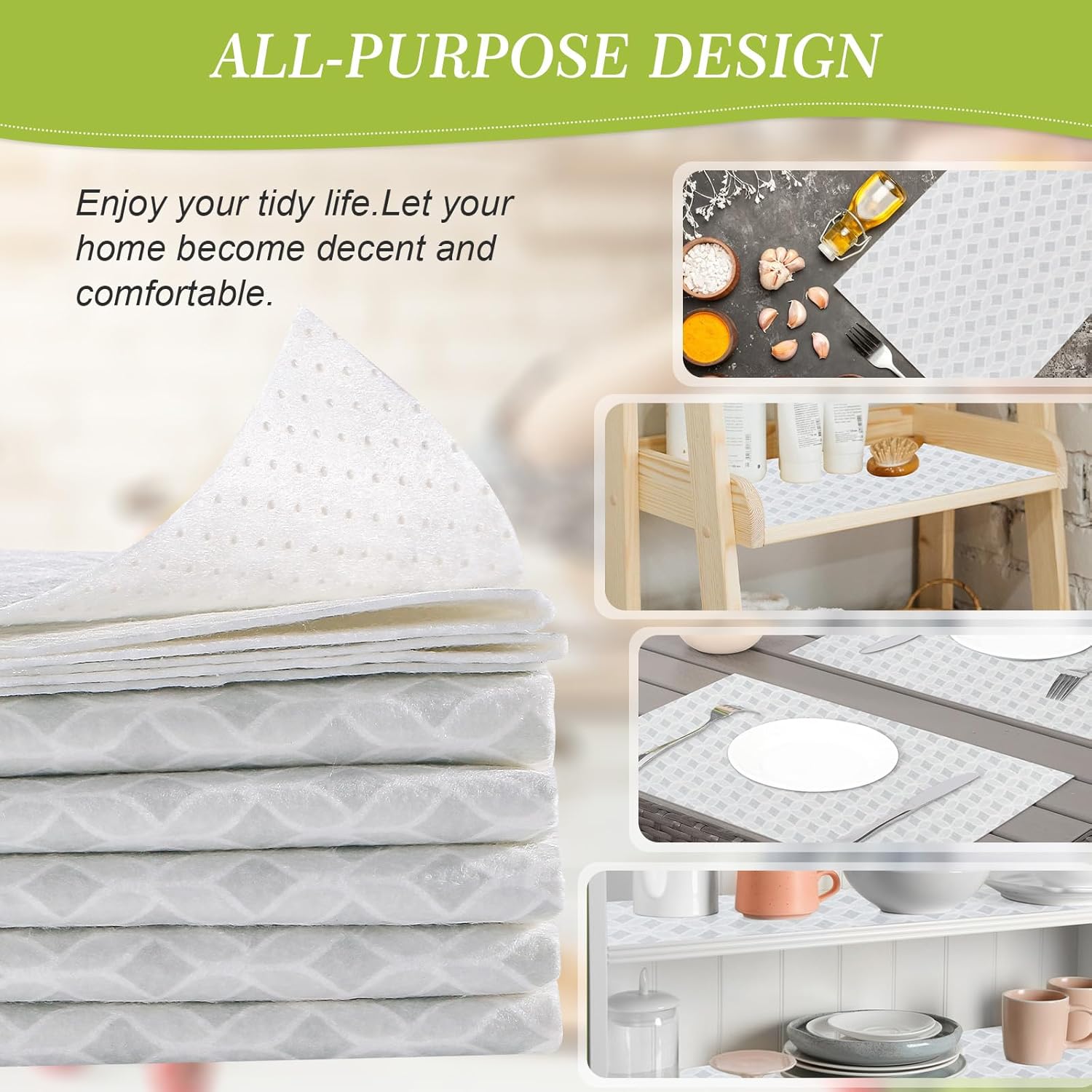 - Cut to Fit: Package includes 12 pack 17.7inch x 24 inch fridge shelf liner, sufficient to meet our using and replacement needs; The refrigerator shelf liners for kitchen cabinets are easy to trim for customization; Refrigerator bin liners can also be used in kitchen cabinets, glass shelves, drawers, cupboard, wire shelves, pantry, table