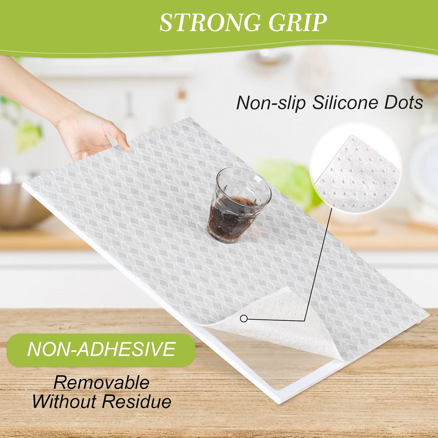 - Non-slip, Non-adhesive: Refrigerator liners have non-slip silicone dots on the back of the liner, which provides superb grip and keeps the liner in place without sliding around or curling like plastic refrigerator liners; The surface of the refrigerator liner is made of non-stick fabric that prevents the items on it from moving around