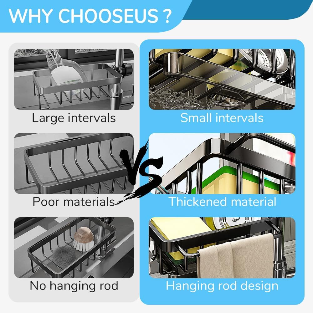 - đ„ăMultifunctional organizational shelfăThe kitchen shelf offers space for sponges, brushes and soap squeegees, steel wire balls and other everyday kitchen utensils.It can organize all your kitchen clutter and create a clean and tidy kitchen environment for you. It can also be used in the bathroom or other places