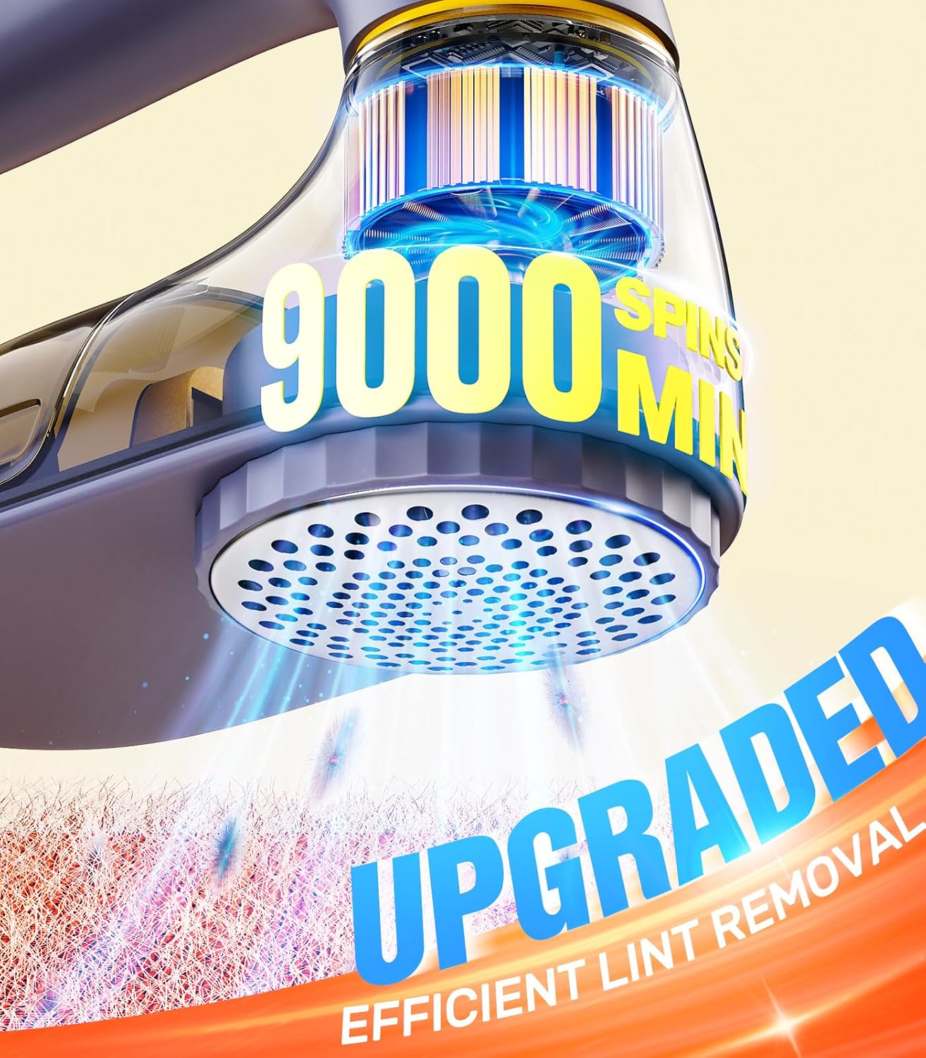 - Upgraded Efficient 6-Leaf Blades: Fabric shaver for clothing spinning at 9000 rotation per mintue, it removes lint in seconds. No clogs, just flawless clothes and furniture that feel as fresh as the day you bought them