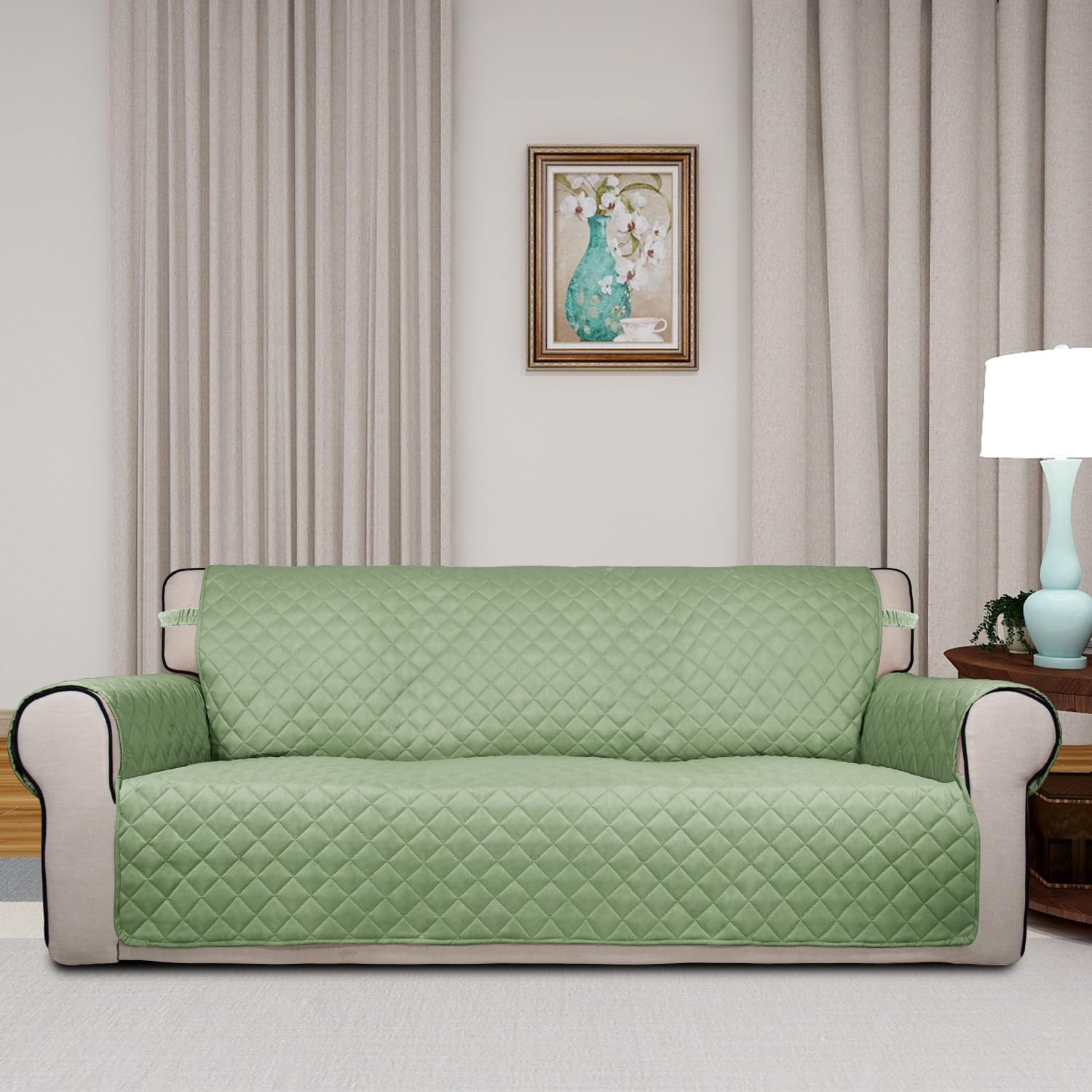 PureFit Reversible Quilted Sofa Cover, Water Resistant Slipcover Furniture Protector, Washable Couch Cover with Non Slip and Elastic Straps for Kids, Dogs, Pets (Oversized Sofa, Sage Green/Ivory)