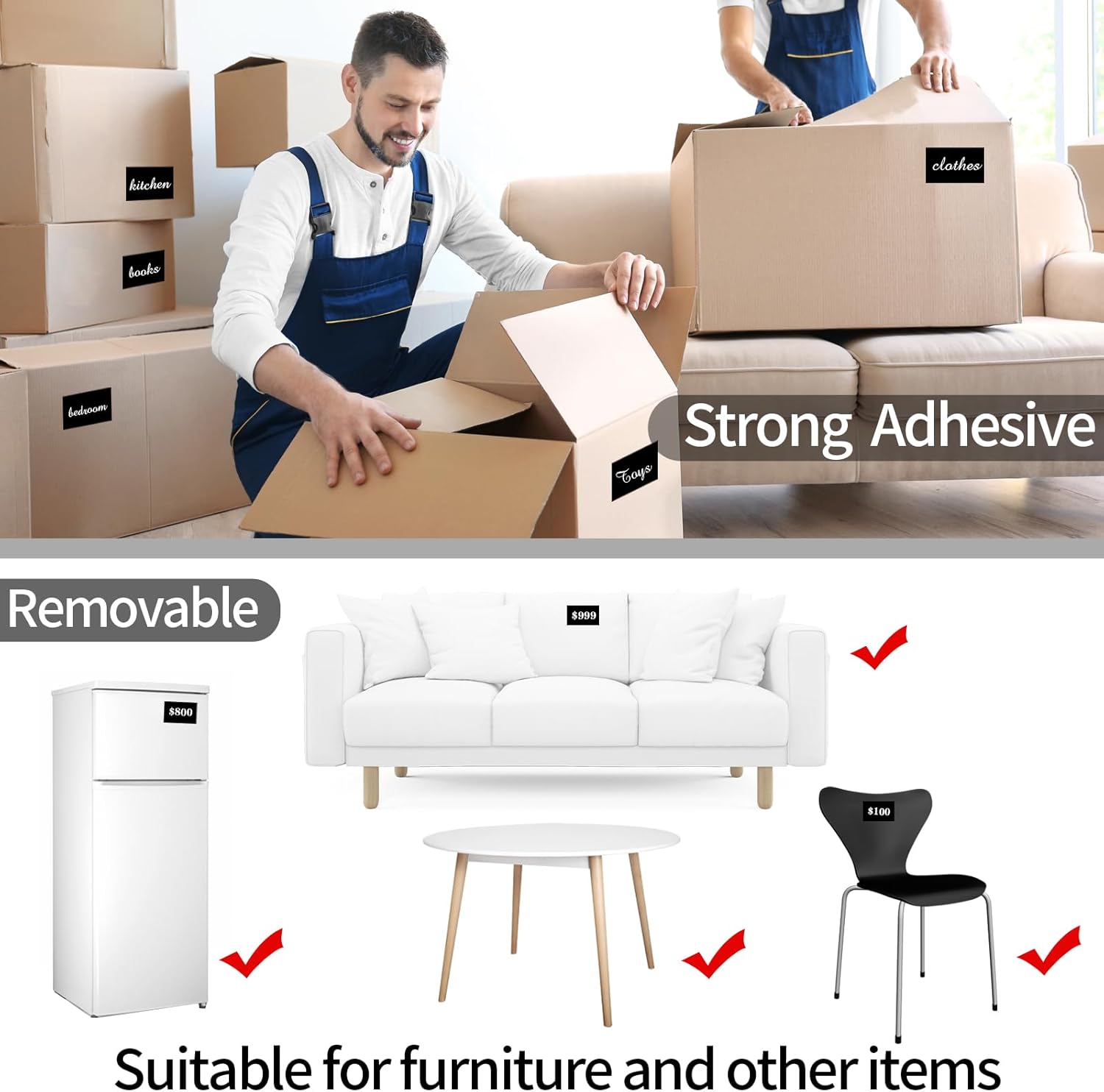 STARLIBOO Removable Colored Labels Stickers, 3X5 Inch Removable Large Label Stickers for Moving Boxes and Storage Bins- Waterproof- Tear Resistant (Black)