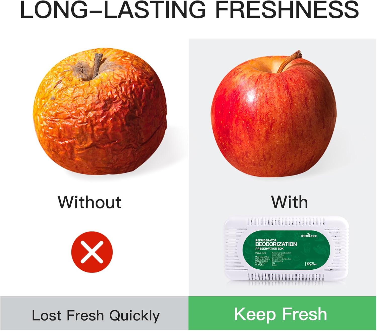 - Long-lasting Freshness: This deodorizer features 360° Moisture absorption and deodorization, preventing contamination and flavor transfer.