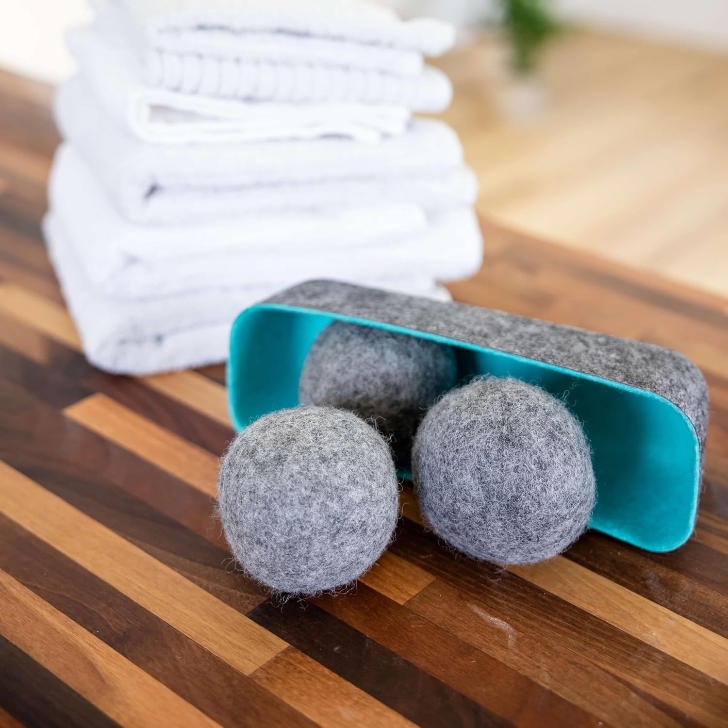 - The felt·like·it! dryer balls + storage bin is a sustainable and efficient solution for your laundry needs. The set includes six wool dryer balls neatly stored in a just-right-sized felt storage bin.
