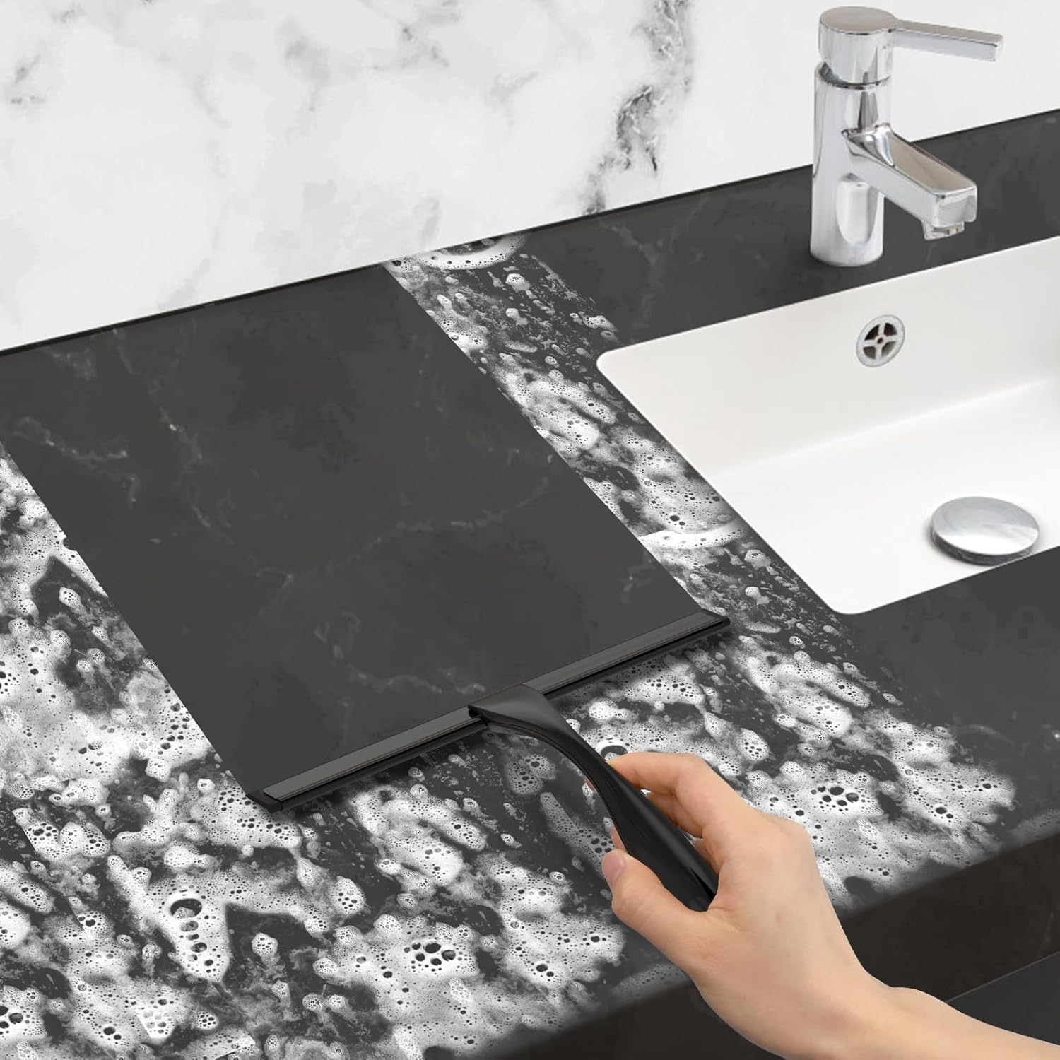 - 【Easy to Store and Use】: Package includes a waterproof adhesive hook, you can hang the squeegee on the shower glass, kitchen and any other places for easy reach and use.