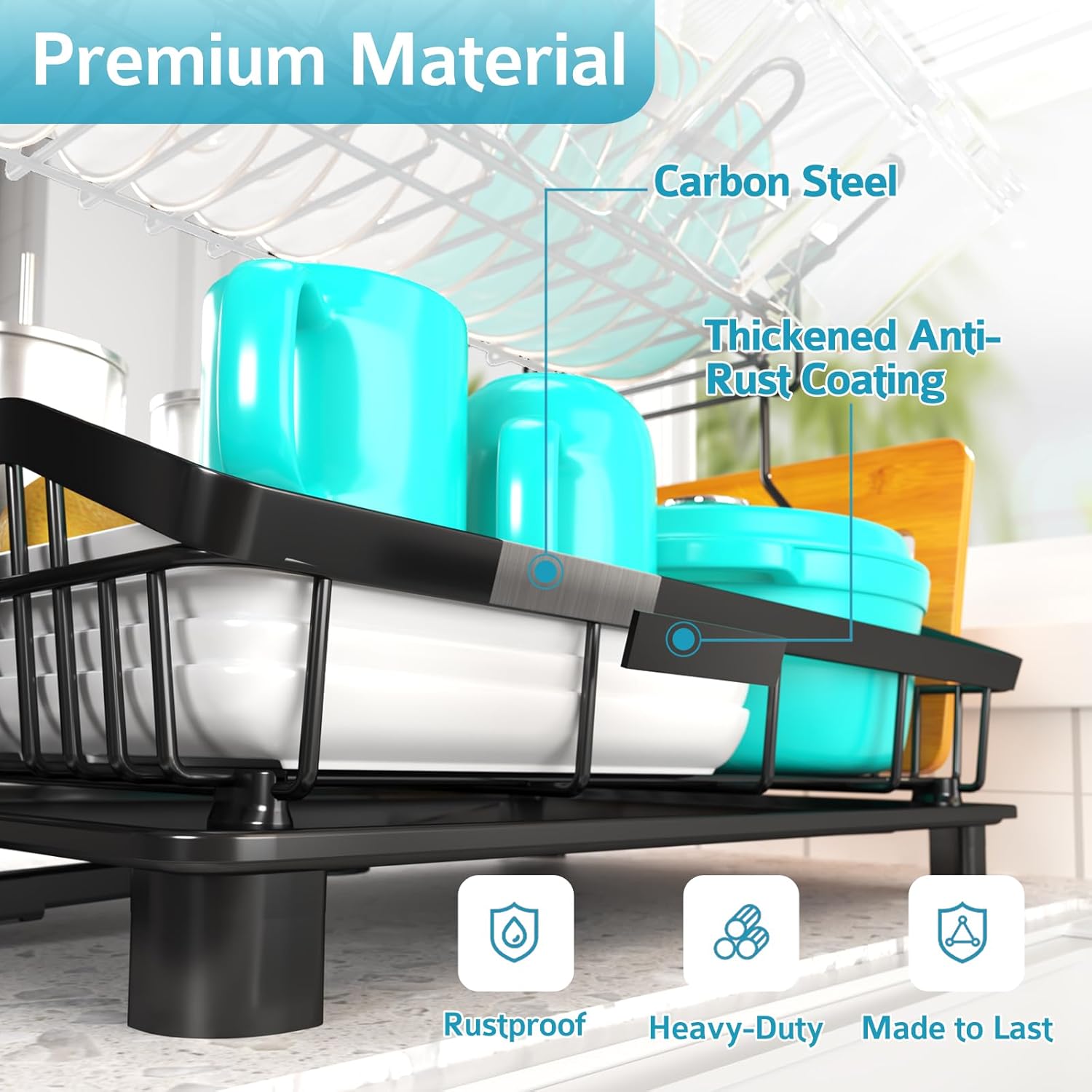 - 【Sturdy & Durable】This dish rack for kitchen counter is made of high-quality carbon steel and coated with an anti rust coating to protect the rack from rust. It is durable and easy to clean. This drying rack kitchen has passed a 24-hour salt spray test, making it a trusted metal drying rack choice for every family, providing better protection for your kitchenware