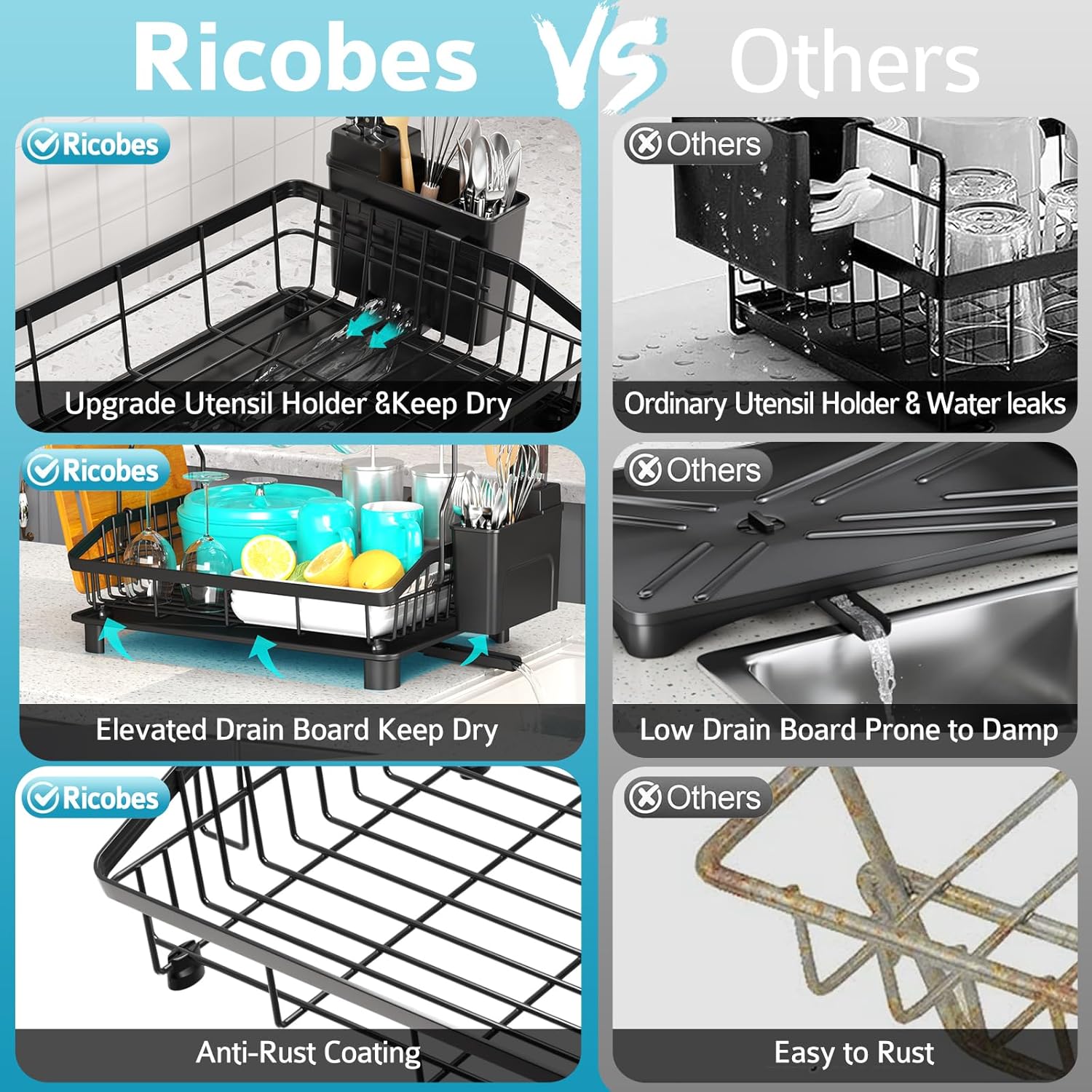 - 【Upgraded Design & Quality Promise】The drainboard surface has a professional waterproof coating, which is easy to clean and can prevent residual stains. The raised drainboard can ensure air circulation without worrying about damp at the bottom of the drainboard, and it is also more convenient to clean. Ricobes is committed to providing customers with high-quality products and excellent service. If you have any questions about the dish rack, please feel free to contact us at any time
