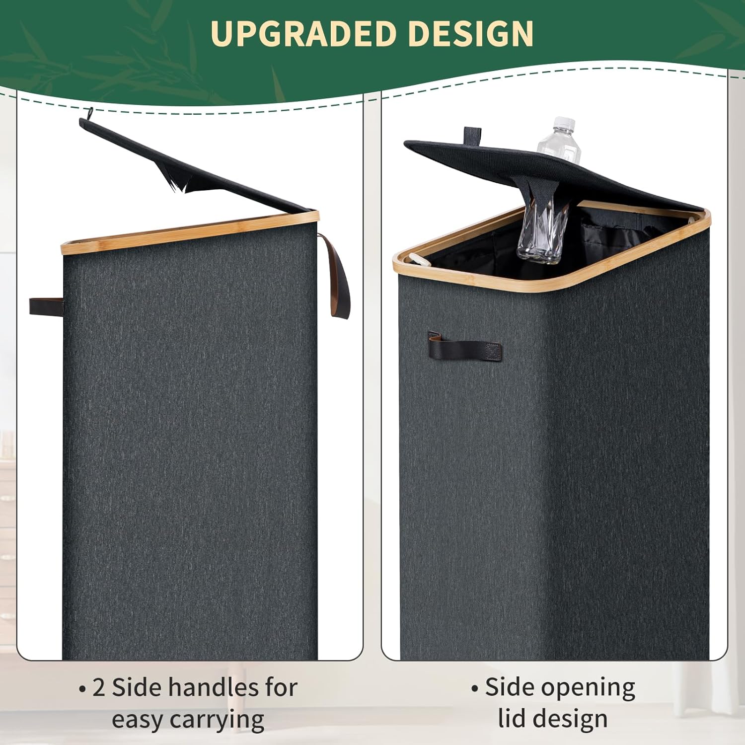 - MULTIFUNCTIONAL RECYCLING BIN- Leather carrying handles on both sides allow for easy handling. In addition to as kitchen recycle bin, our indoor recycling bin can also be used to store dirty clothes, old newspapers, pet supplies or toy baskets