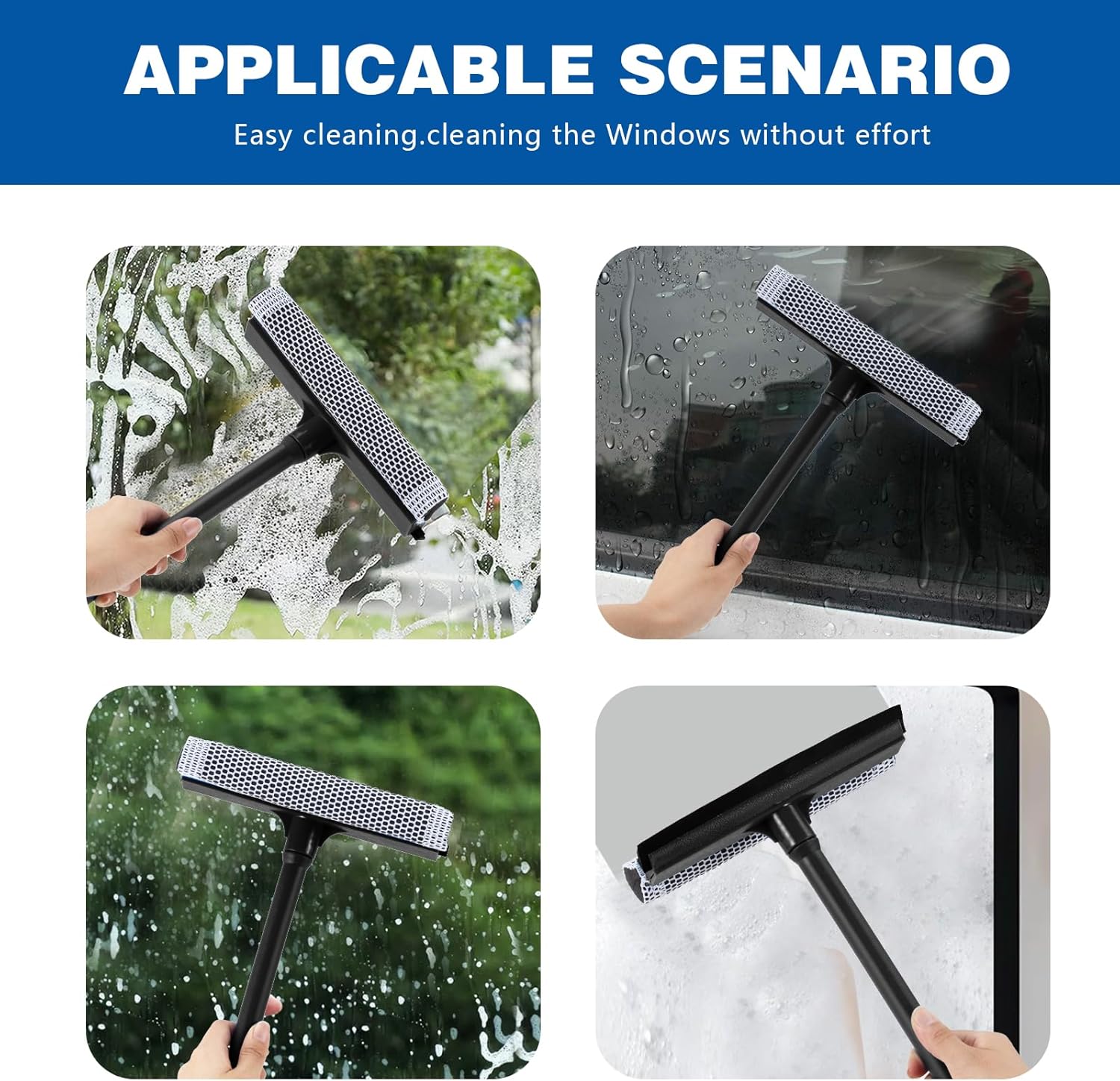 - 【Multi-Use Window Squeegee】:Used for auto cleaning,car windshield window squeegee and house window squeegee, clean glass windows,doors, mirrors, vehicle glass, shower room glass,high window cleaning,marine squeegee and boat squeegee.
