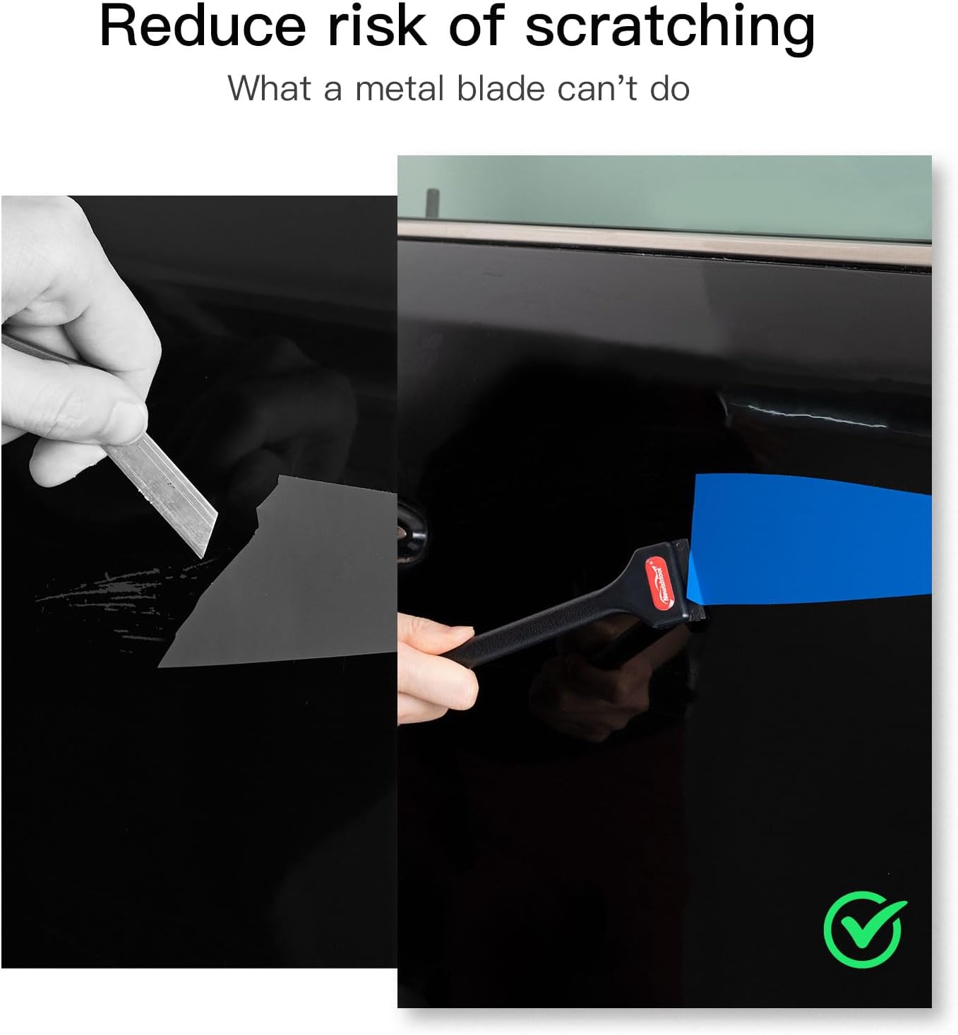 - STURDY SCRAPER: Plastic edge scraper made of durable ABS plastic, works greatly as a paint scraper, window scraper, glass scraper, vinyl scraper or floor scraper in cleaning task. Plastic razor blades can do the same jobs as the steel blades but without scratching finish or hurting your fingers.