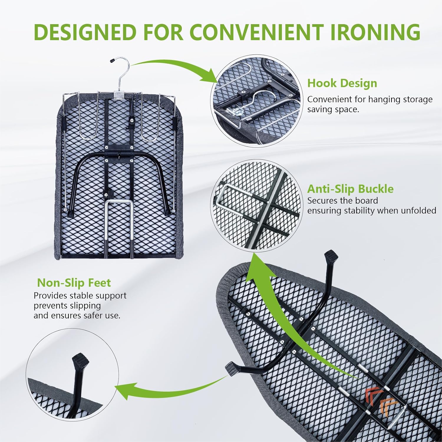 - Sturdy and Stable: The feet is sturdy and durable with a non-slip silicone cap, and the sturdy structure ensures that the mini ironing board table top is stable enough