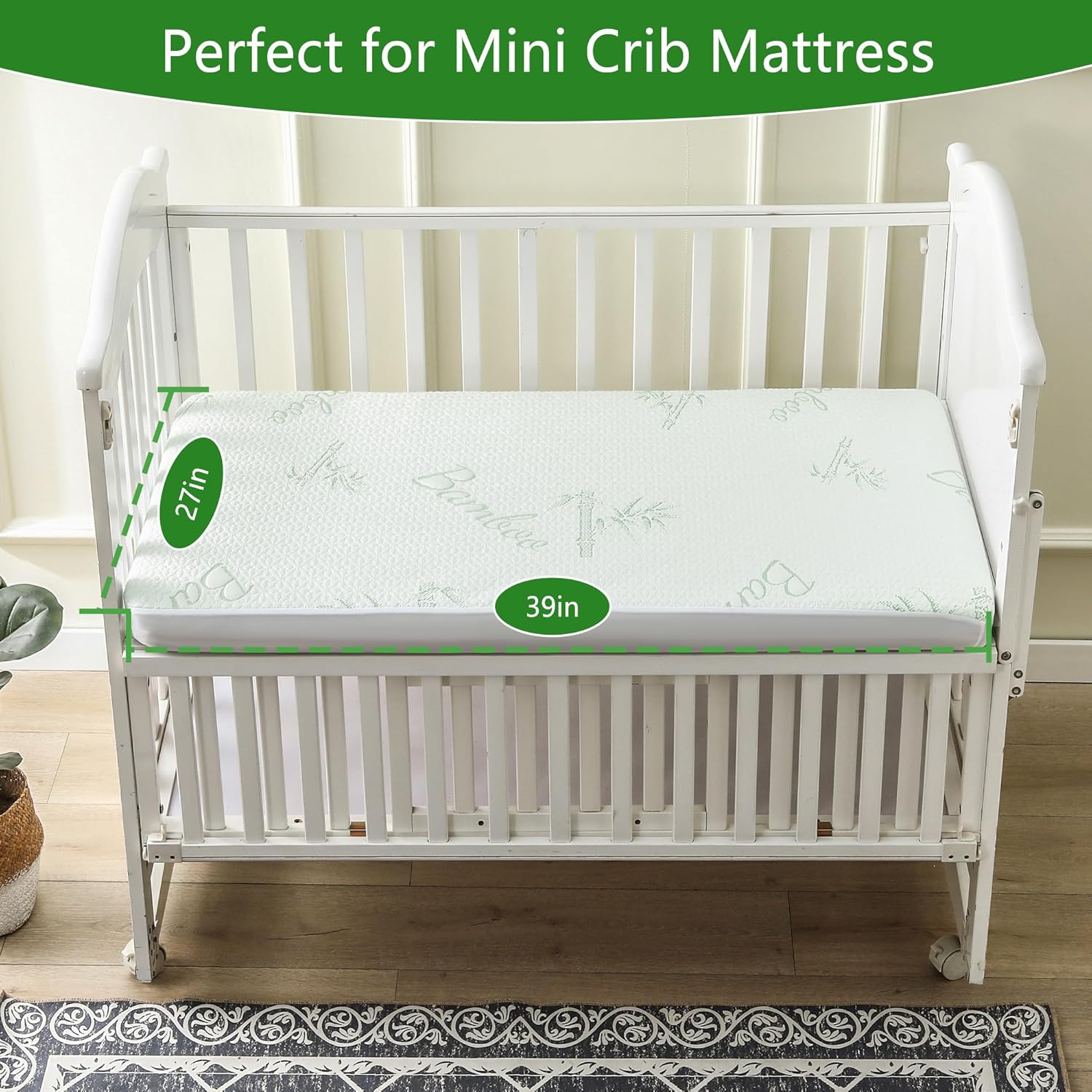 - Perfectly Fitted with 360Β° Deep Pocket: Experience a secure and customized fit with this mini crib waterproof mattress protector, thanks to its all-around high-rebound elastic skirt. Like a glove, it wraps your mattress snugly, while its waterproof capabilities ensure optimal protection. Designed to fit most mini crib mattresses measuring 39"x27" with depths up to 13", this baby crib mattress protector provides a secure and comfortable sleep environment for your little one.