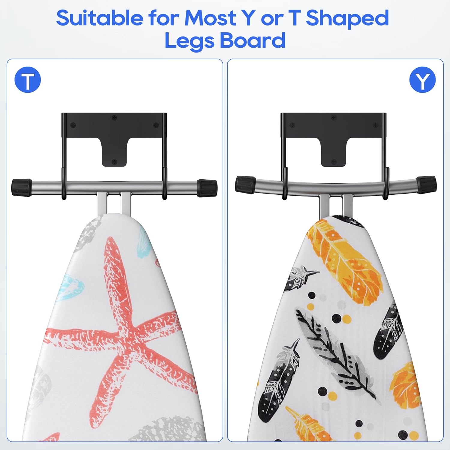 - LAUNDRY ROOM SPACE-SAVER: 2 long metal hooks for hanging your ironing board: suitable for T-shaped or Y-leg ironing boards.