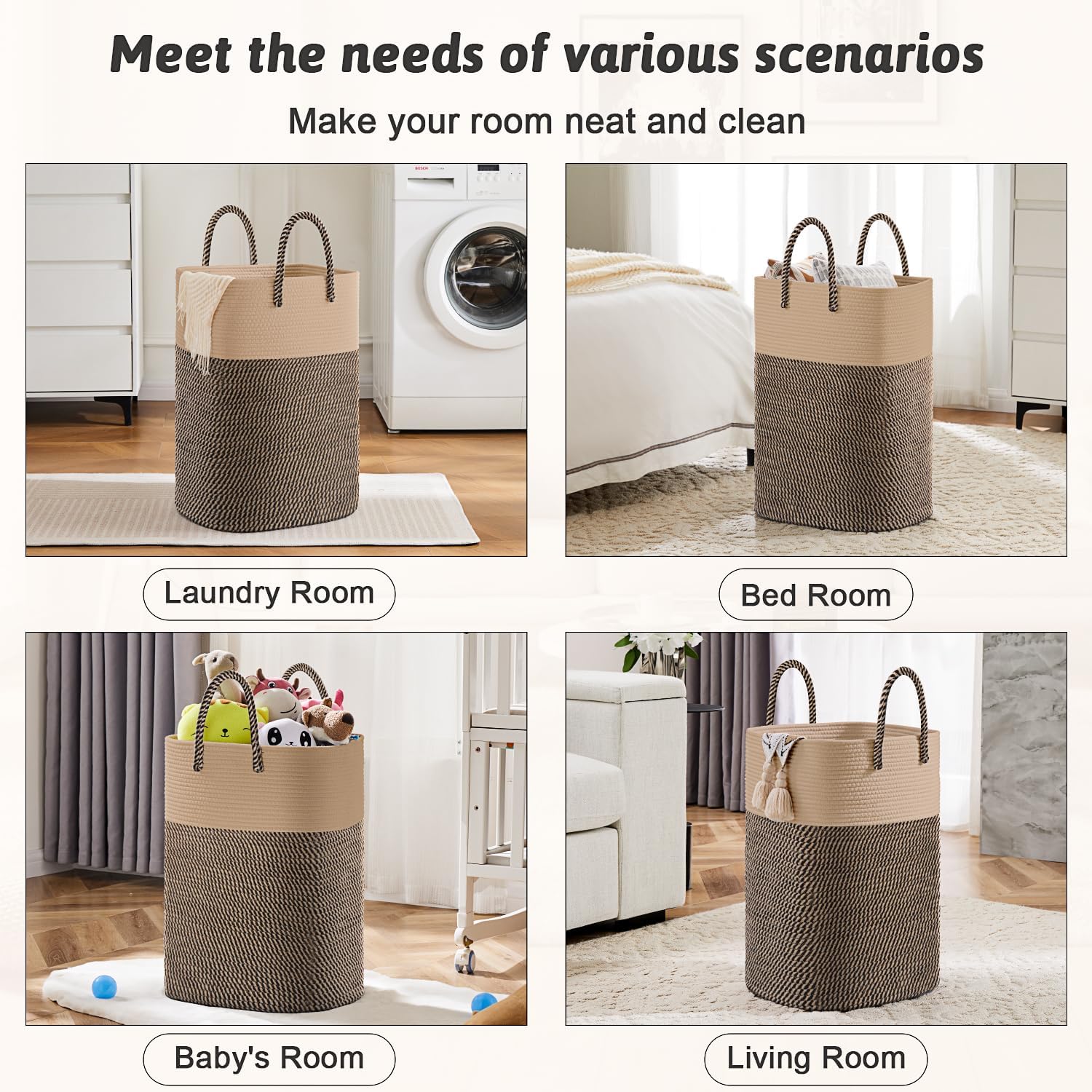 - 🌻【Elegant Natural Charm】 The stylish design of our cotton rope laundry basket brings a touch of natural elegance to your home decor.It seamlessly blends with any room and serves as an eye-catching decorative piece.It's the perfect gift choice for enhancing the beauty of homes,adding a touch of sophistication.