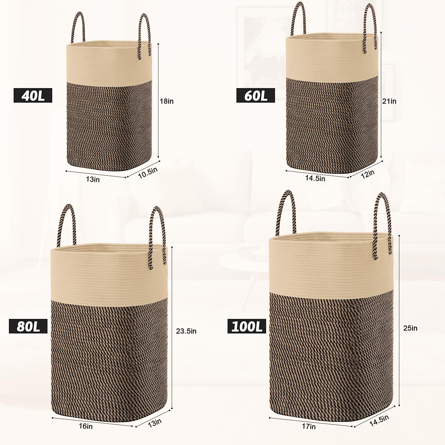 Laundry Basket,Woven Cotton Rope Laundry Hamper,Versatile Storage for Dirty Clothes,Baby Toys,and Blankets in Bathroom, Nursery,and Living Room (Jute, 100L)