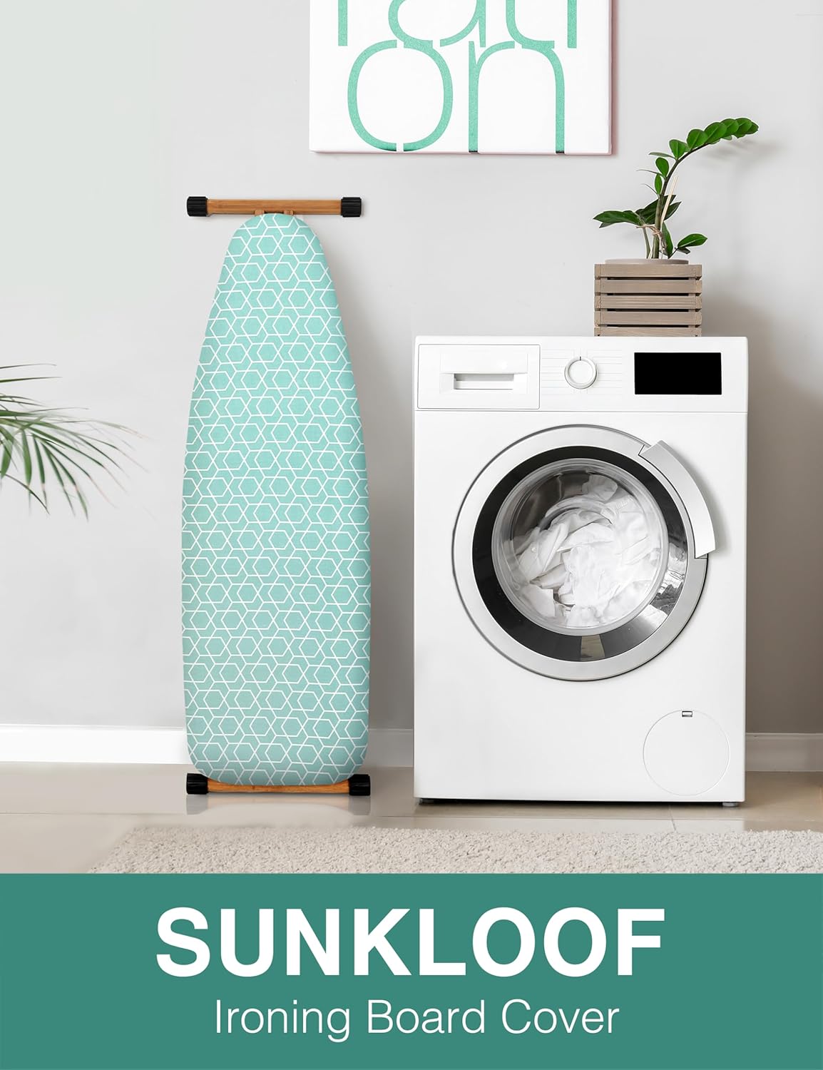 - PREMIUM AND ECO-FRIENDLY MATERIAL: Sunkloof ironing board cover is made of 3 layers- anti stain&scorch coated surface, 100% natural cotton, eco-foam layer and thick felt pad. All materials are eco-friendly . Compared with others, SUNKLOOF is more durable, and makes the boring ironing work easy and enjoyable