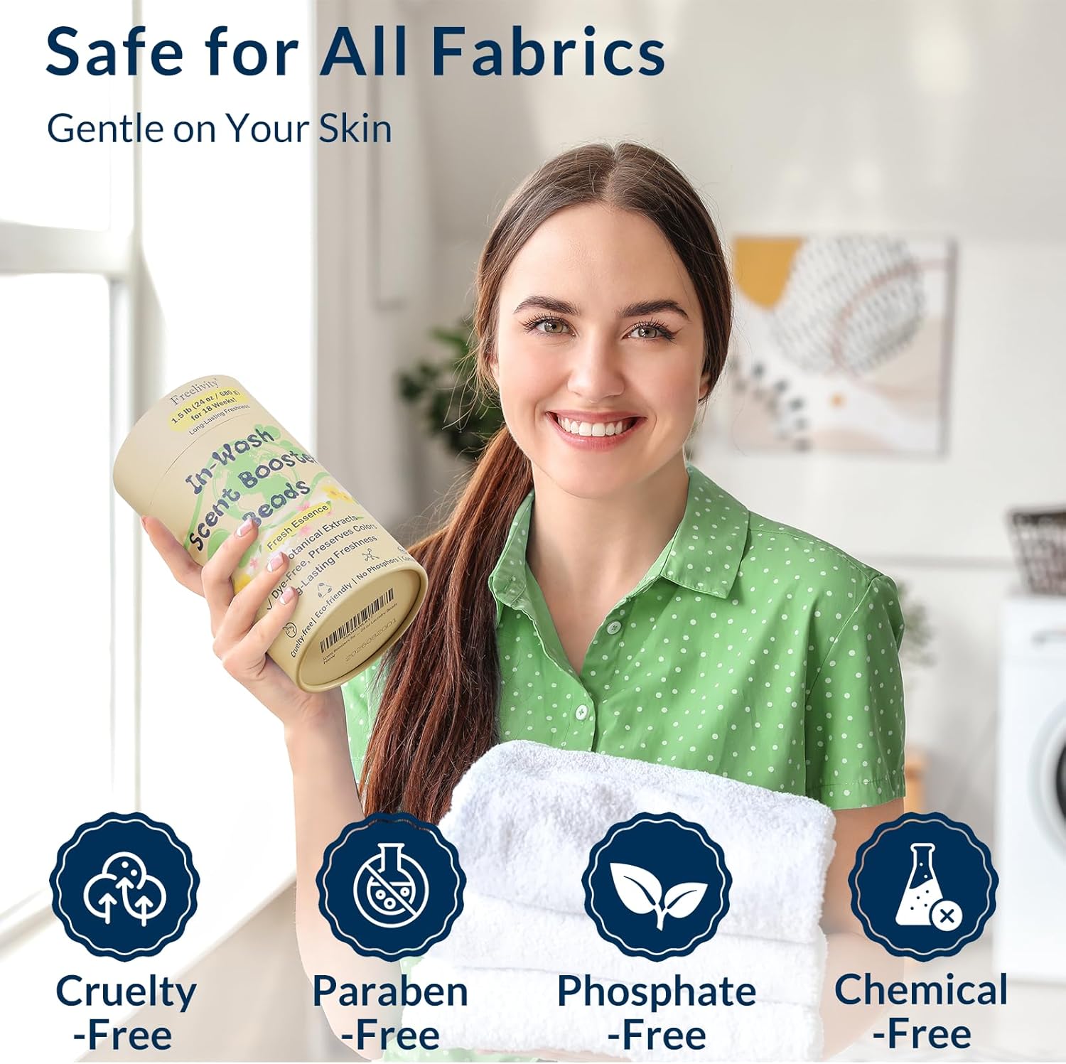 Freelivity In‑Wash Scent Booster Beads – Fresh Essence Scent, Laundry Beads fabric softener, 24 oz – Lasts Up to 70 Washing Cycles – Eco‑Friendly & Safe for Babies and Kids