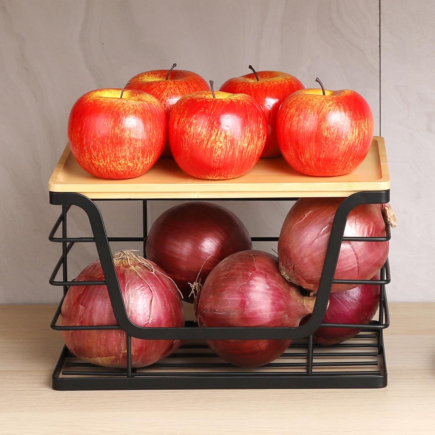 ALOCEO 2 Pack Storage Stackable Kitchen Laundry Organizers with Bamboo Top, Large Trash Bag Holder and Small Garbage Bag Dispenser for Countertop Organization