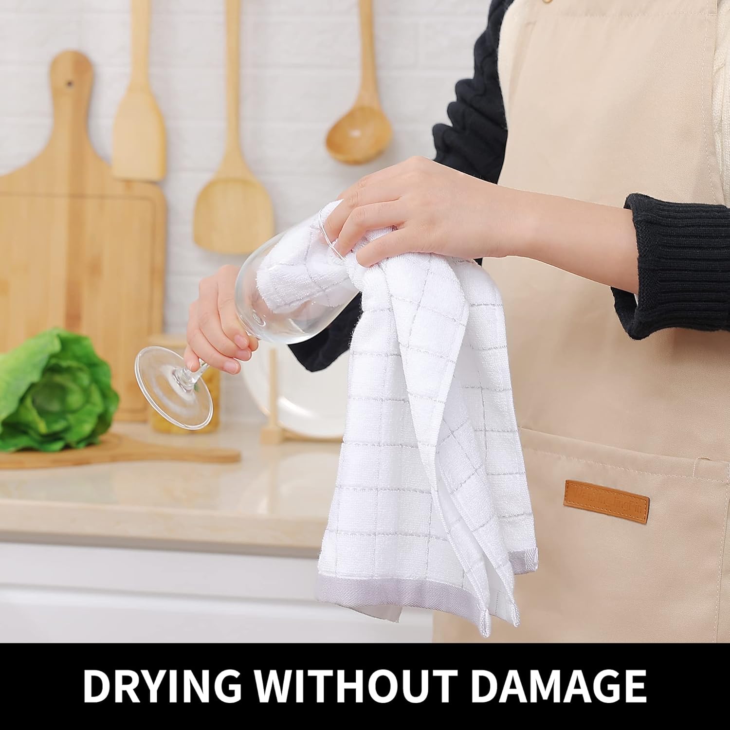 Homaxy 100% Cotton Terry Kitchen Towels(White, 13 x 28 inches), Checkered Designed, Soft and Super Absorbent Dish Towels, 12 Pack