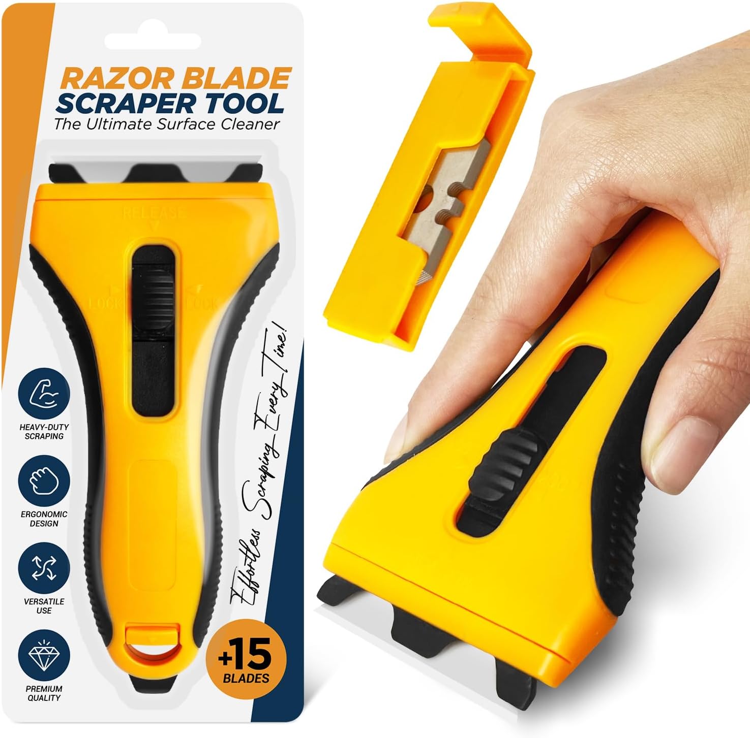 - UNMATCHED DURABILITY AND PERFORMANCE: Meet the ultimate Razor Blade Scraper Tool - built to handle tough tasks with ease. Crafted with a robust, high-quality design, it offers a stable, reinforced grip that outlasts flimsy alternatives. Sturdy enough for heavy-duty jobs yet gentle on delicate surfaces, our Razor Scraper Tool is a reliable, long-lasting addition to any cleaning toolkit