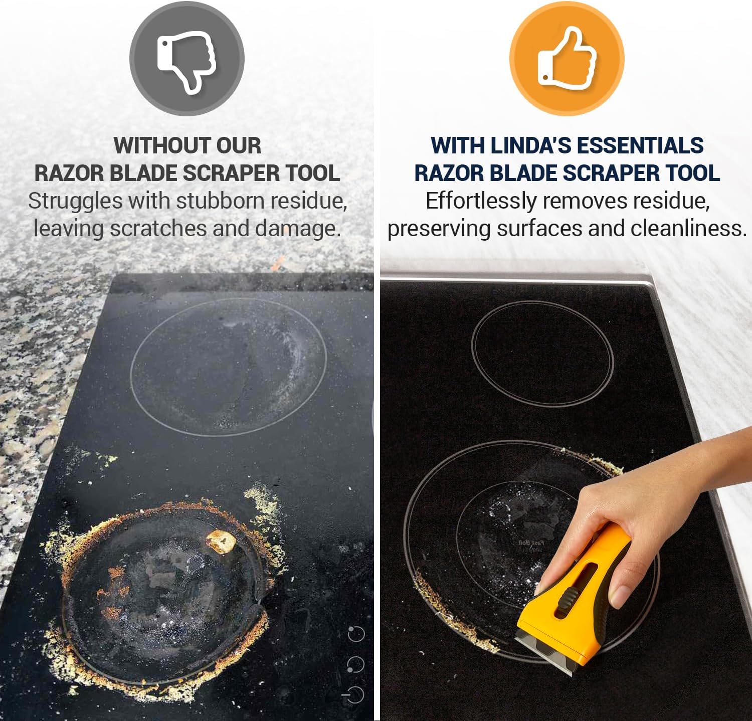 - VERSATILE FOR EVERY JOB: Built to handle tough, burnt-on messes, our Scraper Tool Kitchen clears gunk and residue from glass, ceramic, and induction stovetops without scratching. Beyond the kitchen, it’s versatile enough to act as a paint scraper tool, a window scraper, glass scraper and even a sticker scraper tool - making it the go-to tool for any surface-cleaning challenge