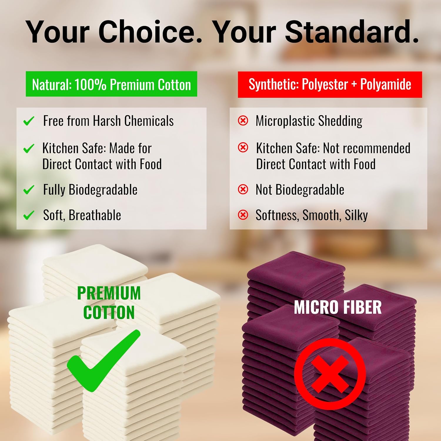 - PREMIUM QUALITY :These Dish Cloths are meticulously fashioned from 100% cotton fabric, guaranteeing a soft, thick, quick-drying, and remarkably absorbent. These superior-quality Kitchen cloths feature sewn edges and a convenient hanging loop, making them an excellent addition to any kitchen, bar, or farmhouse, enhancing the aesthetic appeal.