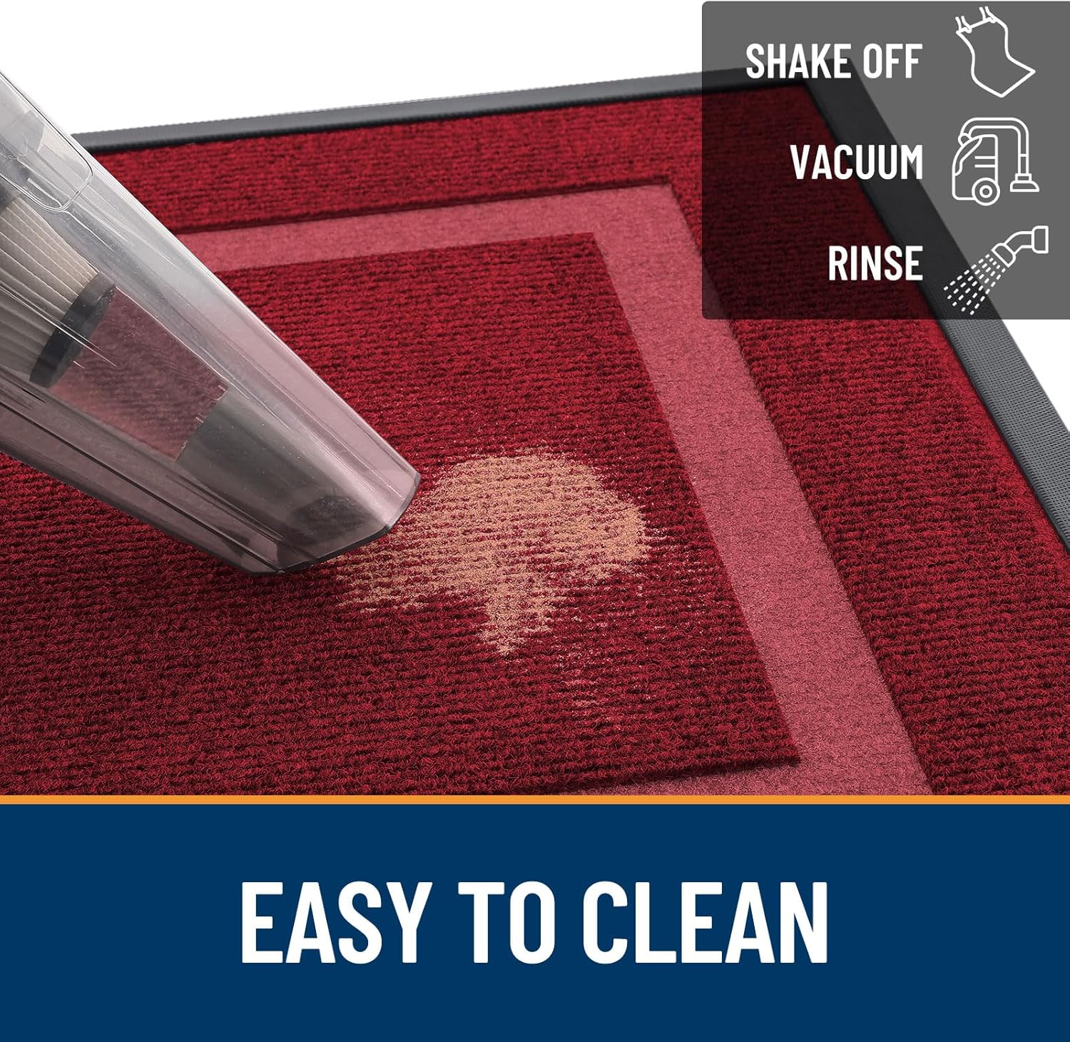 • [EASY TO CLEAN] The OLANLY front door mat is designed for quick and effective cleaning using a vacuum or traditional broom cleaning methods. Additionally, tapping and shaking the back of the doormat helps remove residual debris. For a deeper clean, rinse it with a garden hose and hang the mat in a ventilated place or dry it in a dryer. This versatile cleaning method ensures that your doormat stays clean and tidy, ready to welcome guests.