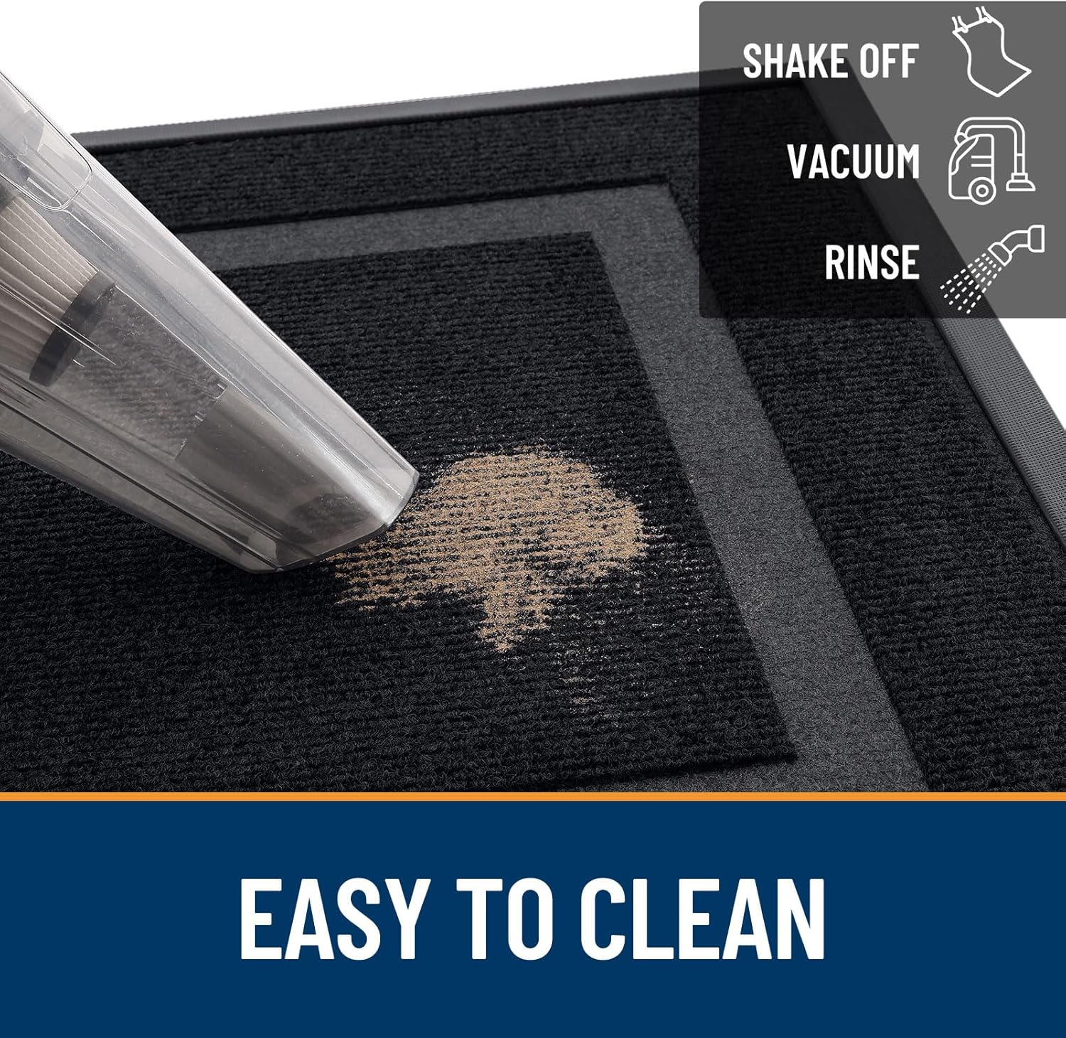 - [EASY TO CLEAN] The OLANLY front door mat is designed for quick and effective cleaning using a vacuum or traditional broom cleaning methods. Additionally, tapping and shaking the back of the doormat helps remove residual debris. For a deeper clean, rinse it with a garden hose and hang the mat in a ventilated place or dry it in a dryer. This versatile cleaning method ensures that your doormat stays clean and tidy, ready to welcome guests.