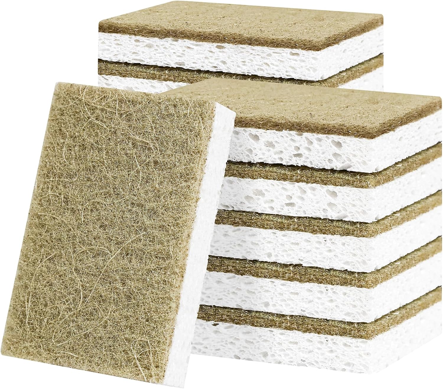 - Non-Scratch Power: Dual-layer cleaning sponges feature a gentle cellulose side and a tough coconut fiber layer to scrub off grime without damaging glass, ceramics, or non-stick cookware.