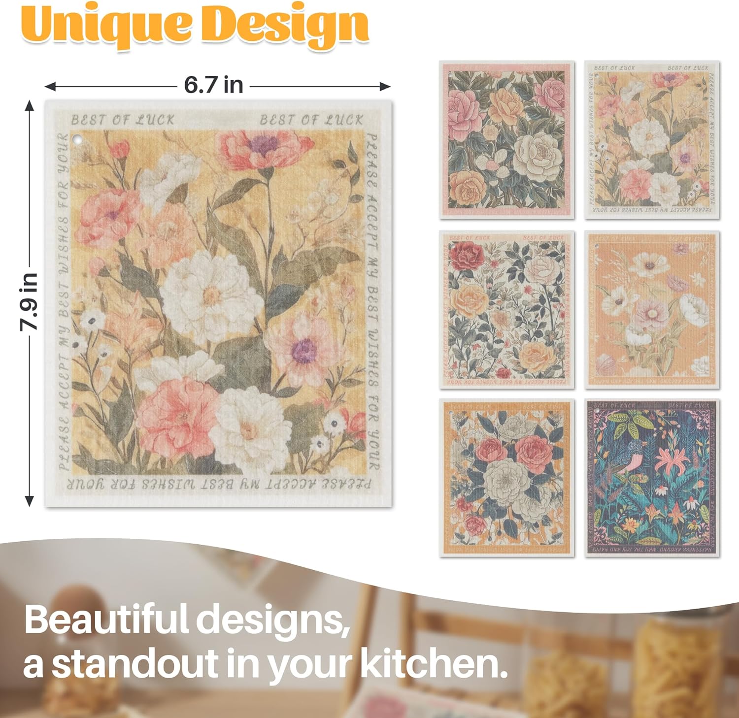 - [Update Larger Size] Comes in 1pack of 12pcs with 6 different pattern designs, measuring 6.7" x 7.9" each. Every cleaning is a different style.