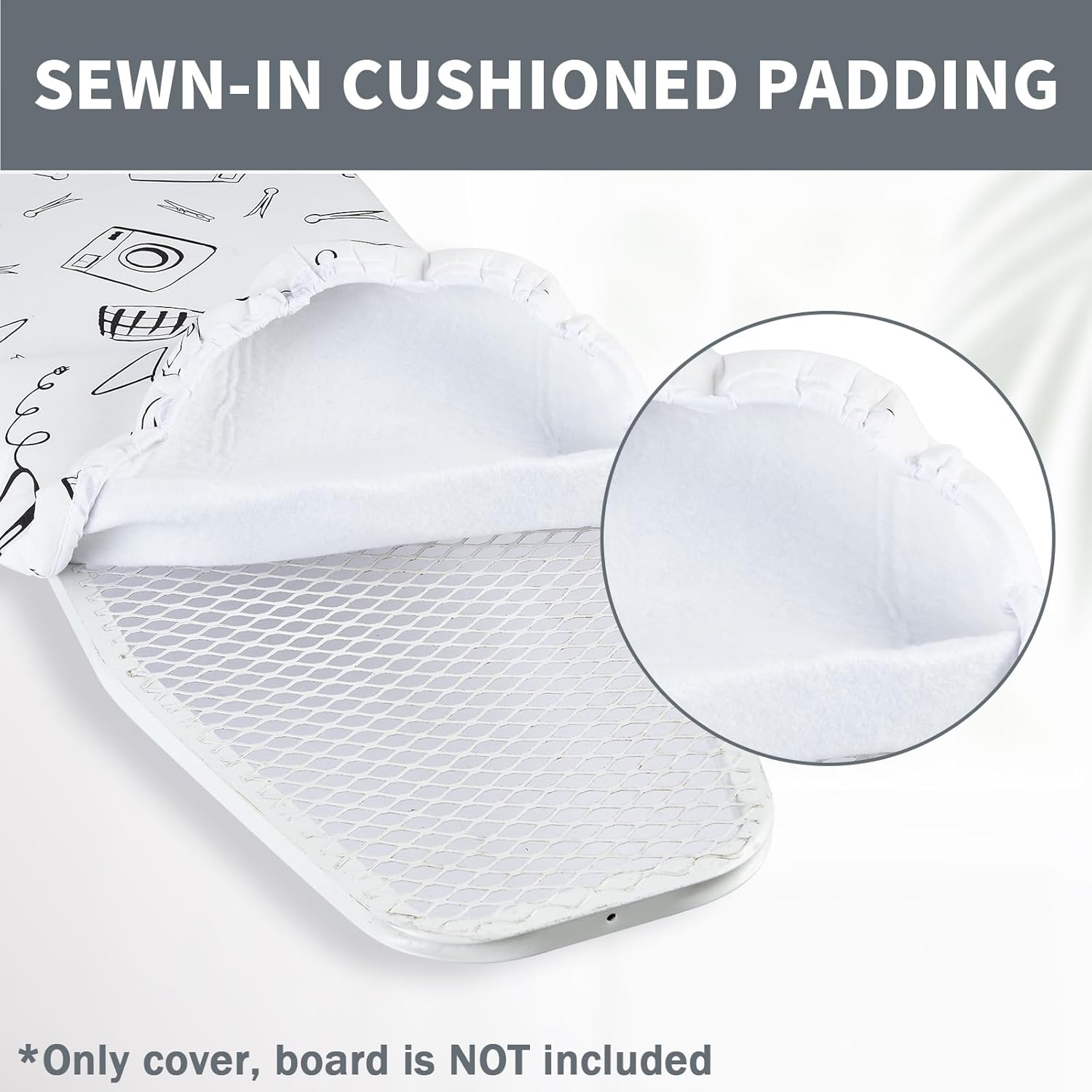 - EXTRA THICK MATERIAL FOR BETTER IRONING: This ironing board cover adopts natural breathable cotton with scorch resistant finish as cover. Using ultra thick stitched fibers, the thickness can reach 6mm. This synthetic fiber evenly radiate heat and steam, achieve high temperature ironing and safer