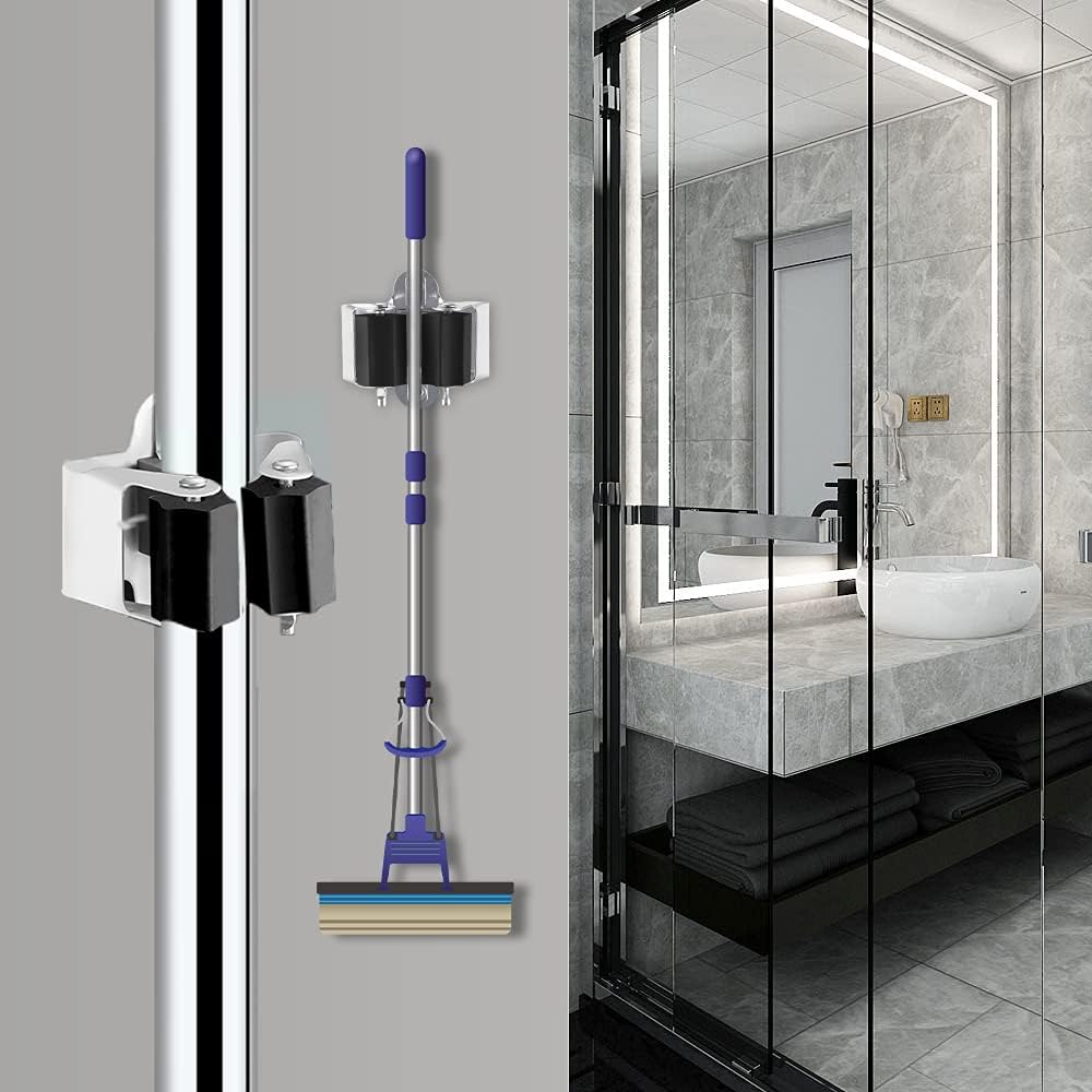 - EASY TO USE: Because mop broom holder wall mounted is made of 0.7mm thick metal material instead of 0.5mm as most of the ones on the market, you don’t have to worry about deformation even if you use it indoors or outdoors for a long time.You can slide the broom in and out with one hand. Unlike plastic mop holders with spring-loaded rollers, this broom organizer wall mount has rubber rollers to hold the handles, allowing the handle to slide in from the front and be held firmly in place.