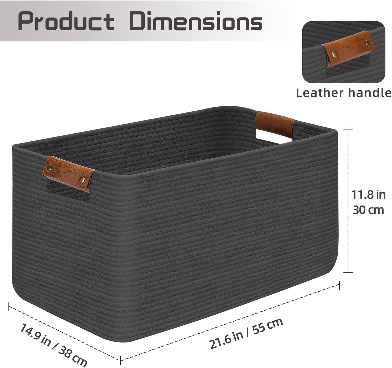 - Decorative & Versatile: Pure Natural Material Elevates Any Space - Laundry, Toys, or Blanket Storage Solution.The elegant leather handles not only take care of your hands but also add a distinctive highlight to our large baskets.