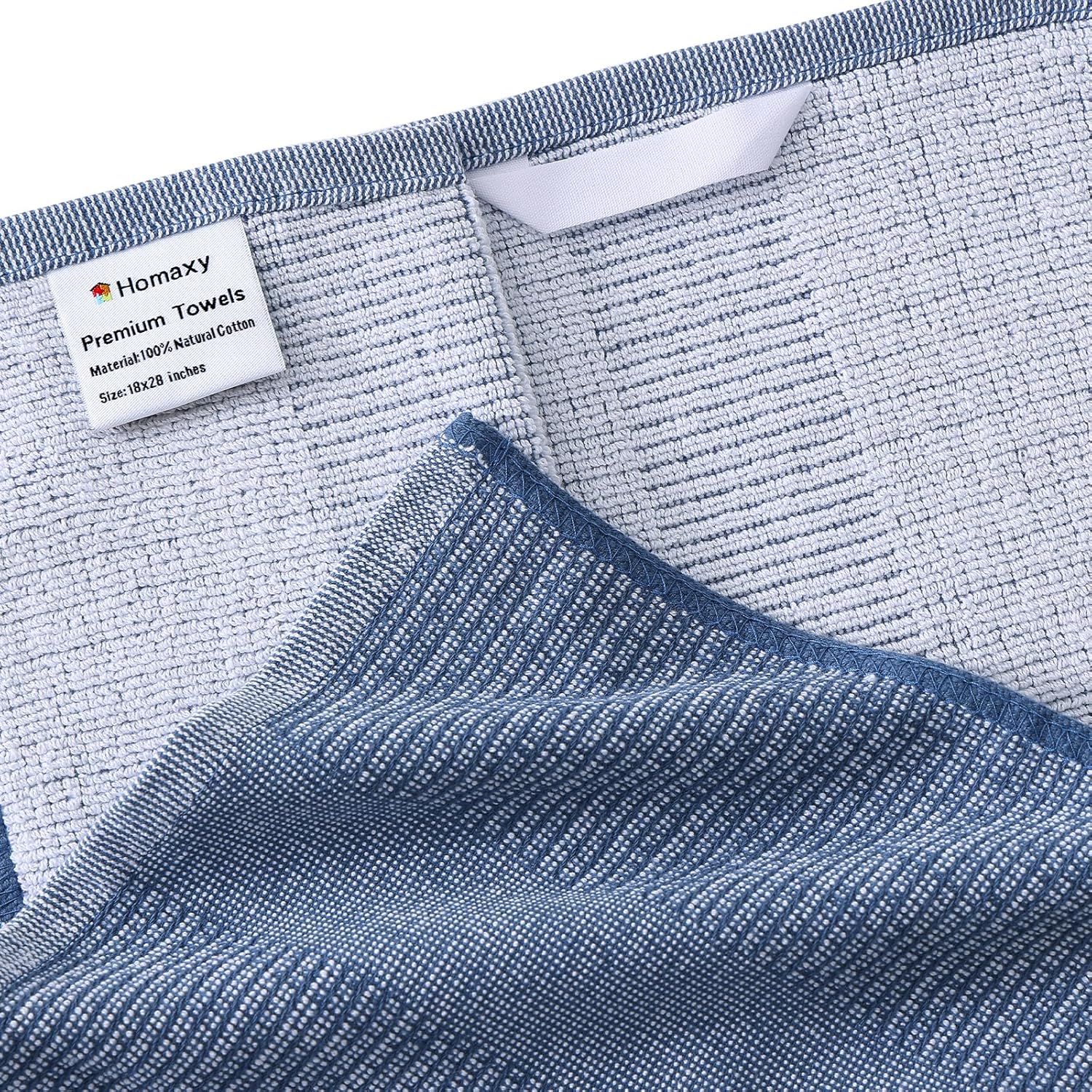 Homaxy Premium Kitchen Towels(18”x 28”, 6 Pack), Large Cotton Kitchen Hand Towels, Flat and Terry Dish Towels, 380 GSM Highly Absorbent Tea Towel Set with Hanging Loop, Navy Blue/Red/Green