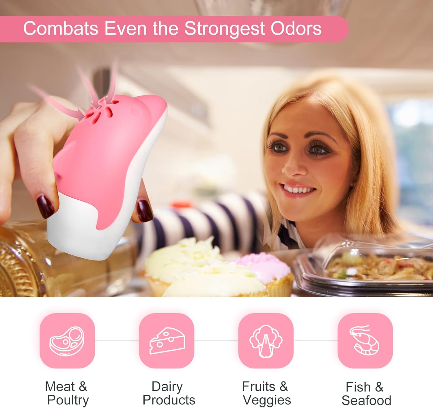 Asltw Upgrade Cute Fridge Deodorizer, Dolphin Fridge Cleaner, Freezer Odor Freshener, Add Baking Soda Reusable Fun Kitchen Gadgets (Pink)