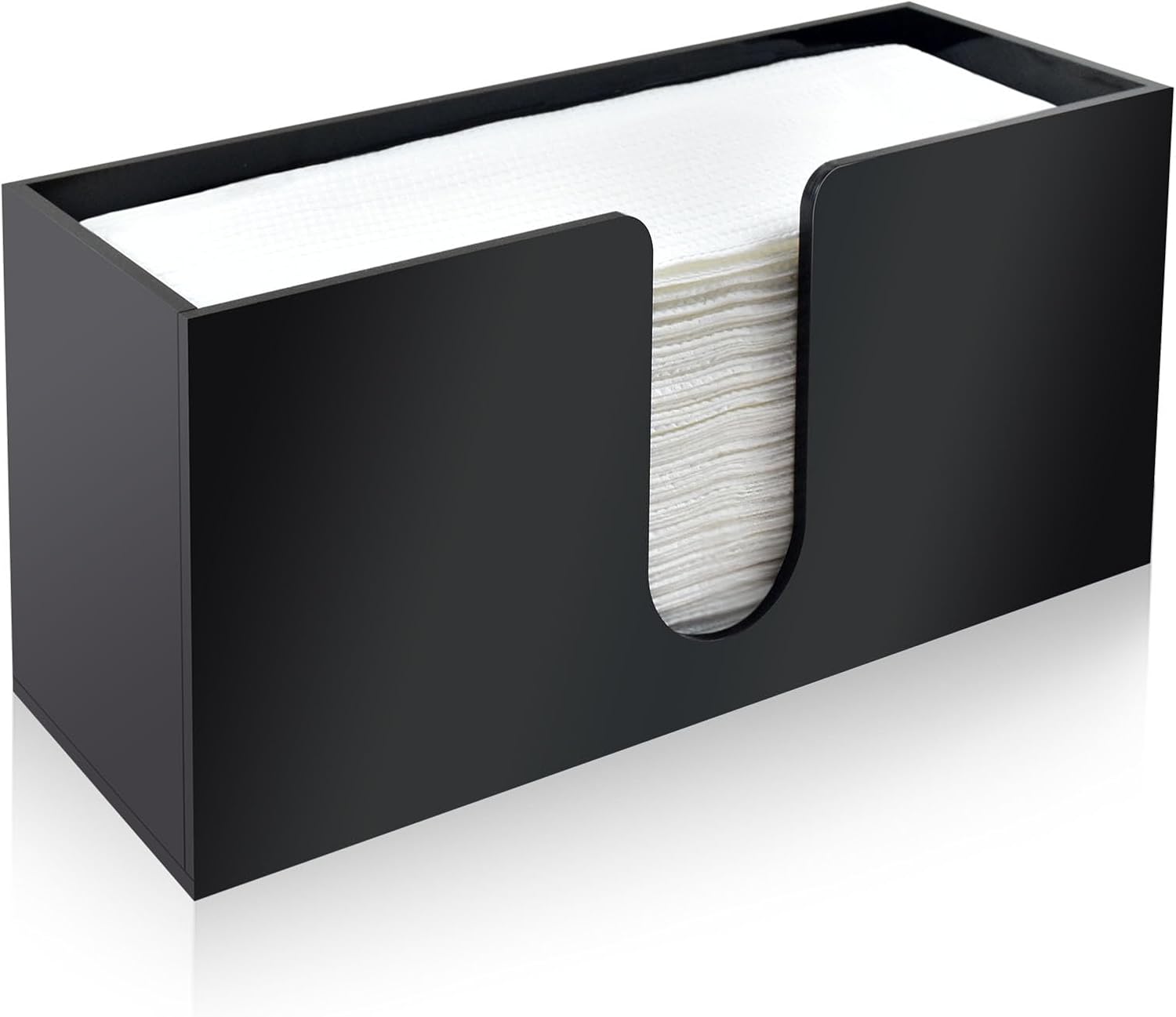 1Pack Paper Towel Holder Countertop, Black Acrylic Napkin Dispenser, Multifold Paper Towel Dispenser for Z-fold C-fold MultiFold Trifold-Bathroom Toilet Kitchen Restaurant