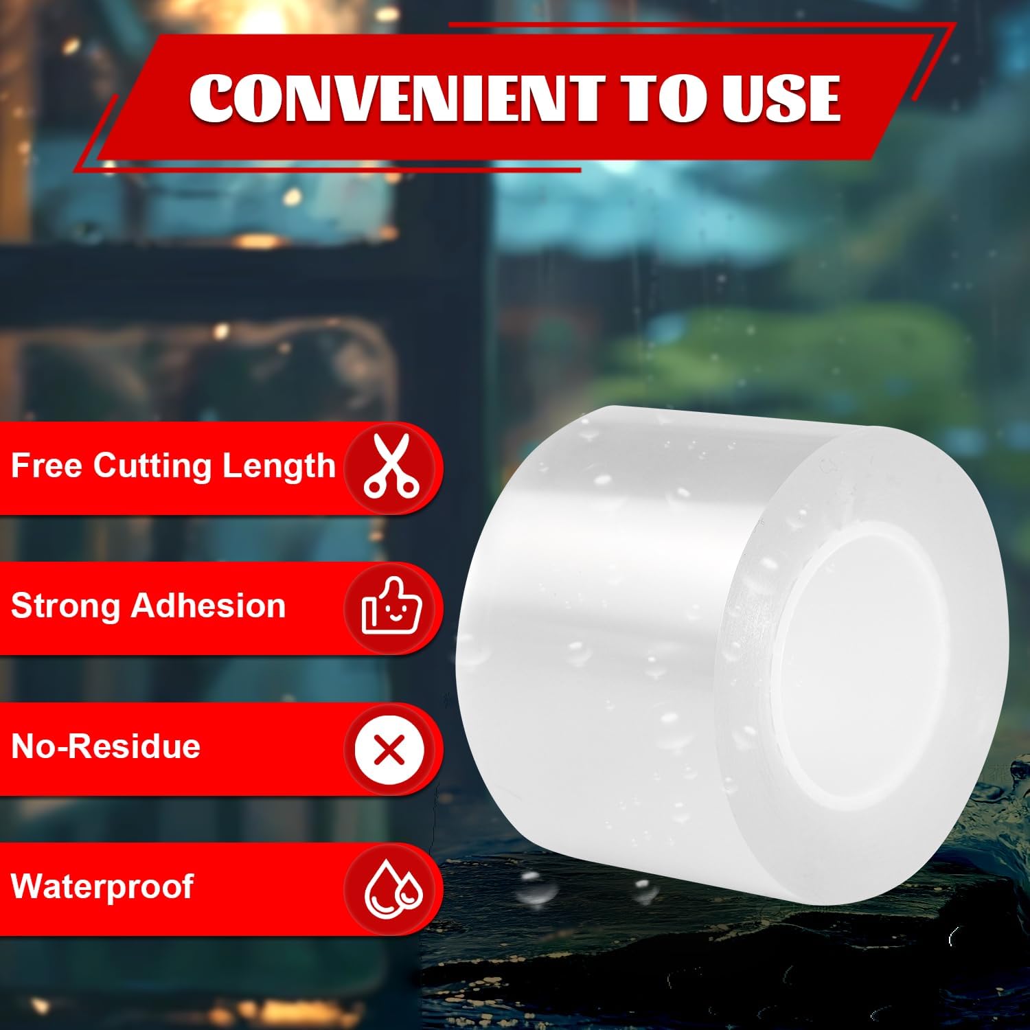 - Package includes: one roll of transparent weather sealing tape (2" W x 16.5' L x 20 mil thick)