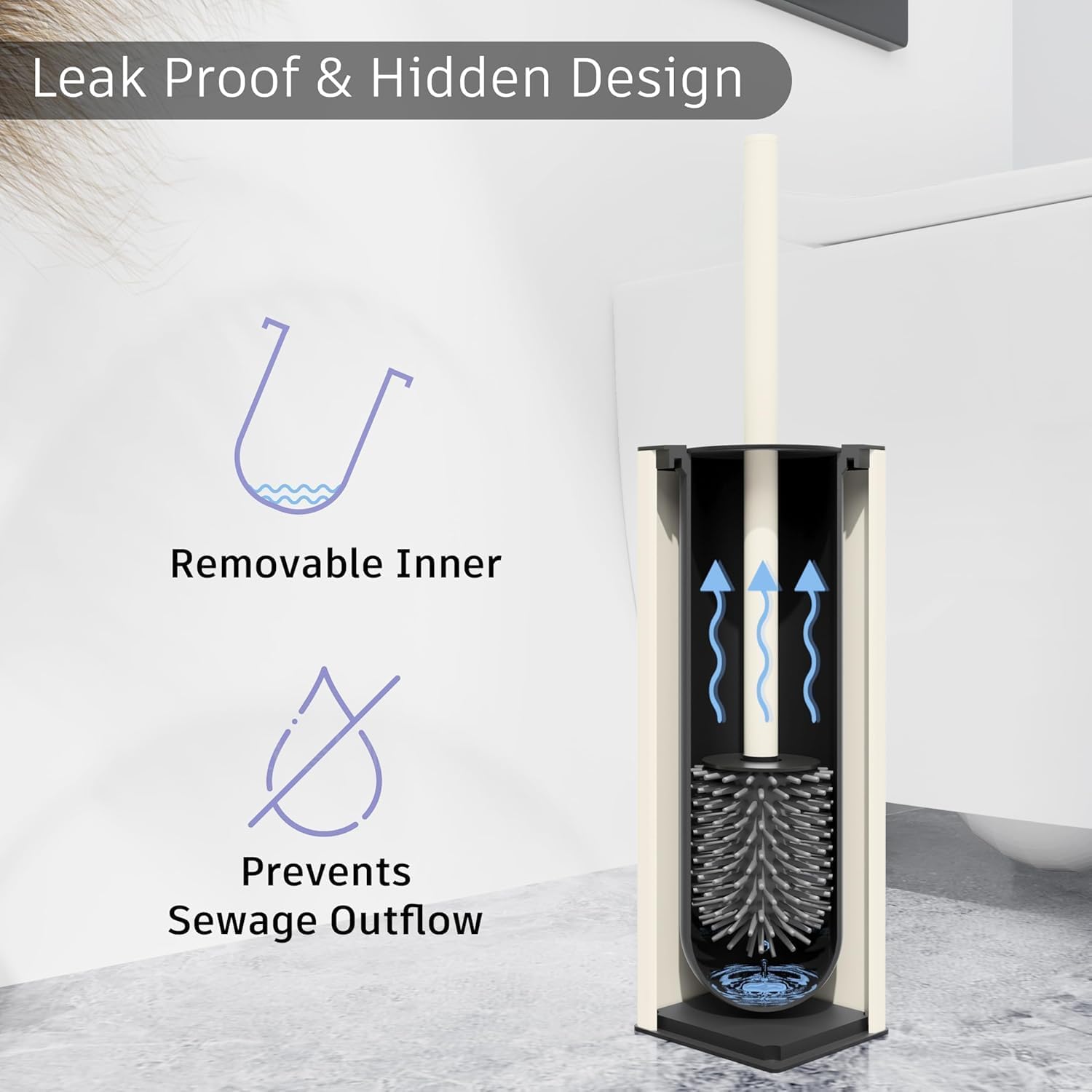 - Two Brush Heads -Including two brushes,one with ABS and the other one with silicon, can alternately use as you like. The protection cover can keep off the stains to splashing on your hands when cleaning the toilet.