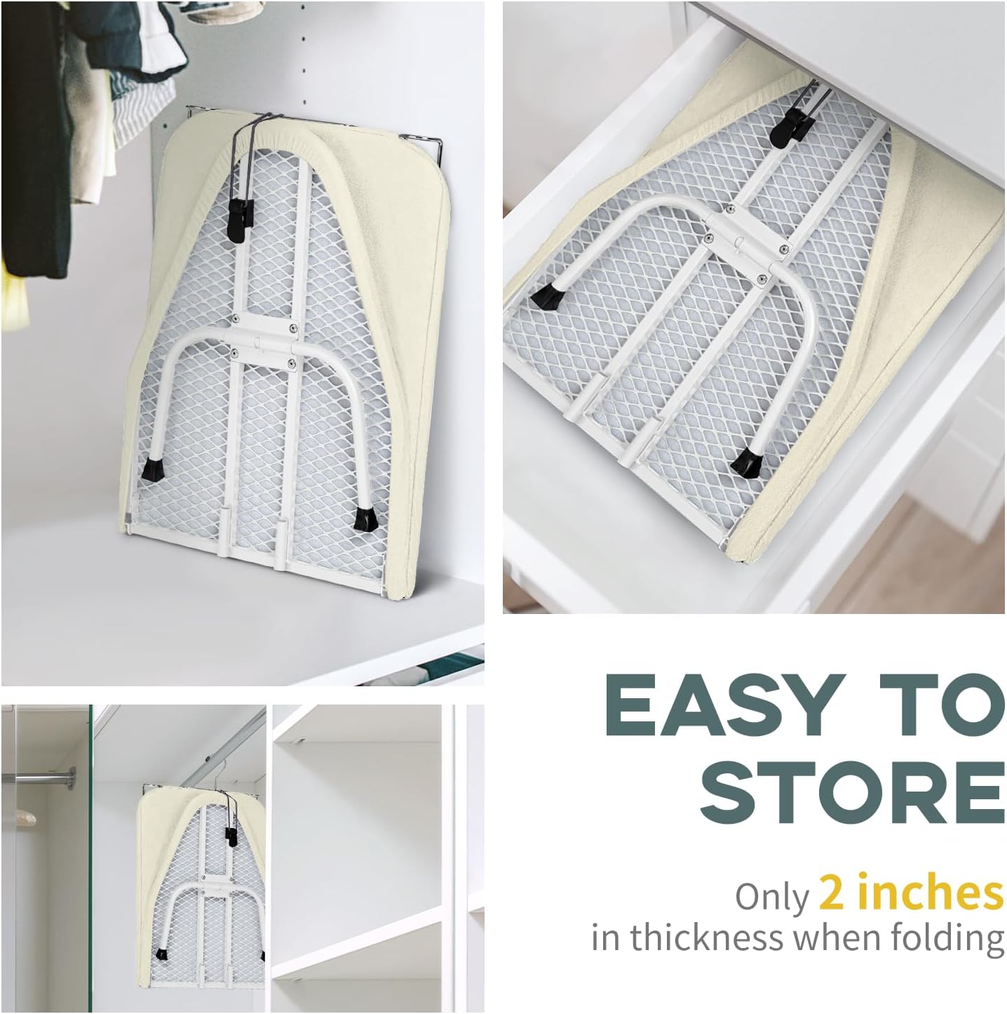 - Travel Ironing Board: Designed to save space, the portable ironing board folds down to only 2 inches thick, making it ideal for small laundry rooms, dorms and apartments